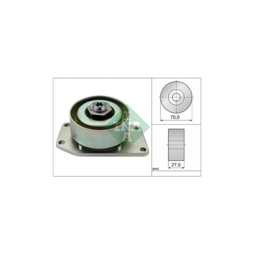 Натяжний ролик ременя поліклинового (приводного) INA 531 0306 10 дозволить зробити заміну зношеної/зламаної деталі, поліпшити ступінь натягу ременя, а також стабільність роботи приводу ГРМ та двигуна автомобіля. Всі деталі ролика виконані з матеріалів, високої якості, що дозволить забезпечити тривалий термін експлуатації деталі. Зовнішній діаметр становить 70 мм. Деталь має висоту 27 мм.