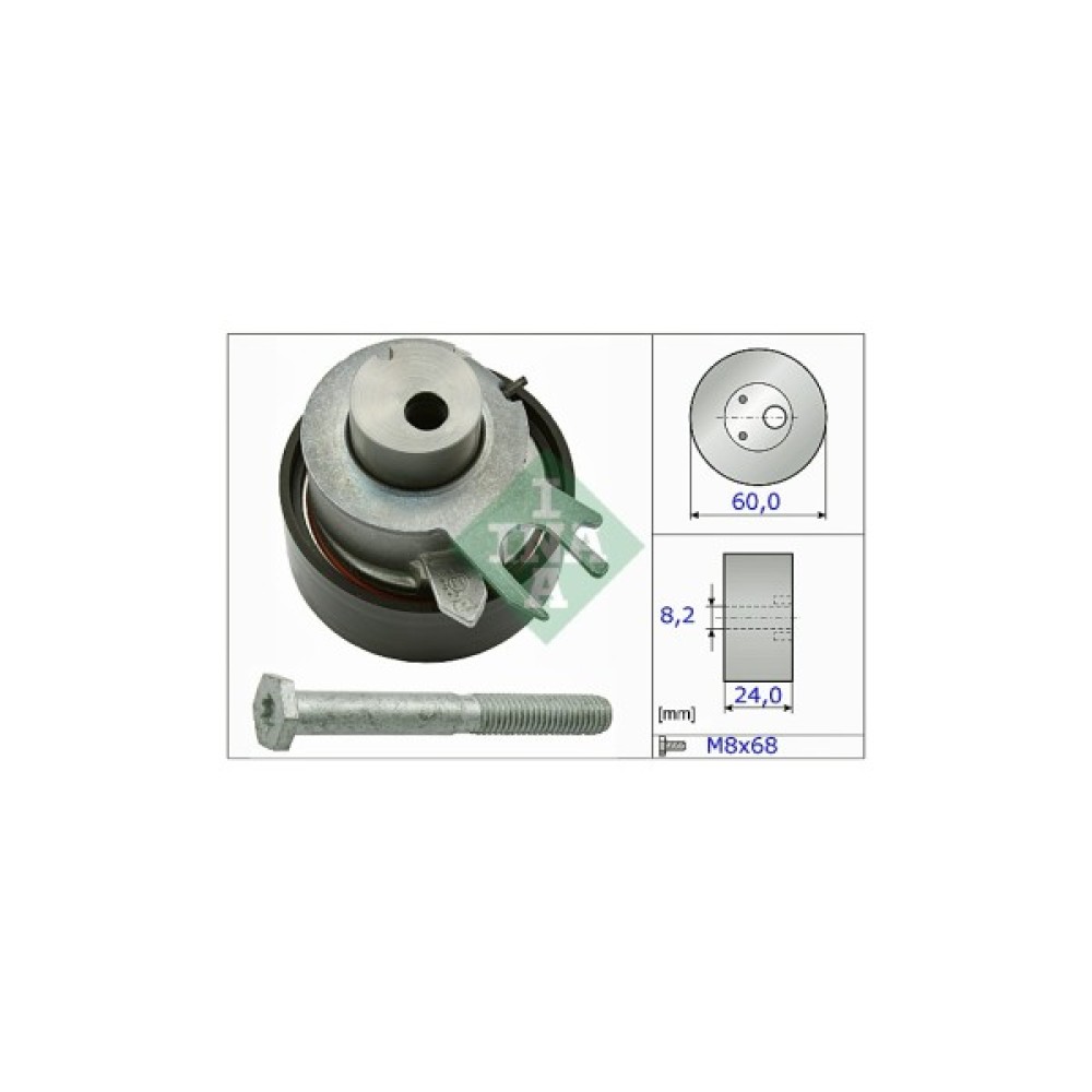 Натяжний ролик зубчастого ременя (ГРМ) INA 531 0317 10 дозволить зробити заміну зношеної/зламаної деталі, поліпшити ступінь натягу ременя, а також стабільність роботи приводу ГРМ та двигуна автомобіля. Всі деталі ролика виконані з матеріалів, високої якості, що дозволить забезпечити тривалий термін експлуатації деталі. Зовнішній діаметр становить 60 мм. Деталь має висоту 24 мм.
