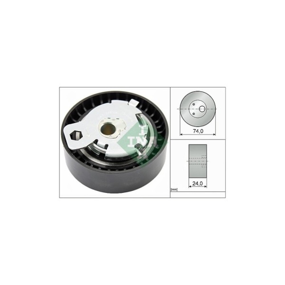 Натяжний ролик зубчастого ременя (ГРМ) INA 531 0497 10 дозволить зробити заміну зношеної/зламаної деталі, поліпшити ступінь натягу ременя, а також стабільність роботи приводу ГРМ та двигуна автомобіля. Всі деталі ролика виконані з матеріалів, високої якості, що дозволить забезпечити тривалий термін експлуатації деталі. Зовнішній діаметр становить 74 мм. Деталь має висоту 24 мм.