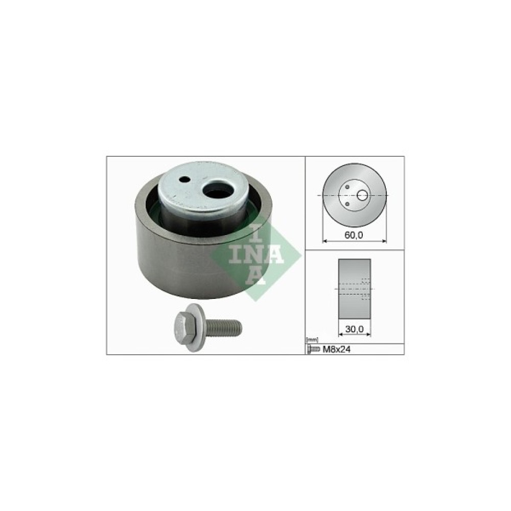 Натяжний ролик зубчастого ременя (ГРМ) INA 531 0780 10 дозволить зробити заміну зношеної/зламаної деталі, поліпшити ступінь натягу ременя, а також стабільність роботи приводу ГРМ та двигуна автомобіля. Всі деталі ролика виконані з матеріалів, високої якості, що дозволить забезпечити тривалий термін експлуатації деталі. Зовнішній діаметр становить 60 мм. Деталь має висоту 30 мм.