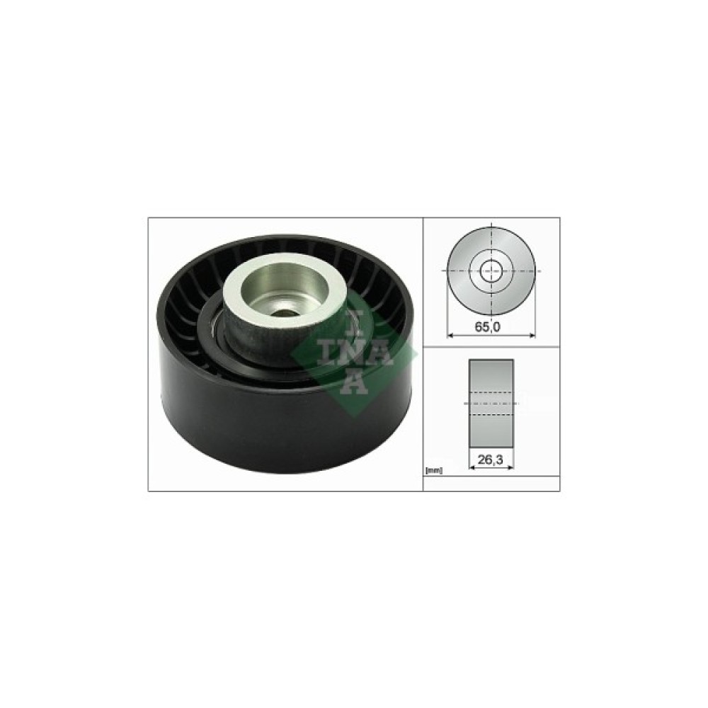Натяжний ролик ременя поліклинового (приводного) INA 532 0470 10 дозволить зробити заміну зношеної/зламаної деталі, поліпшити ступінь натягу ременя, а також стабільність роботи приводу ГРМ та двигуна автомобіля. Всі деталі ролика виконані з матеріалів, високої якості, що дозволить забезпечити тривалий термін експлуатації деталі. Зовнішній діаметр становить 65 мм. Деталь має висоту 26.3 мм.