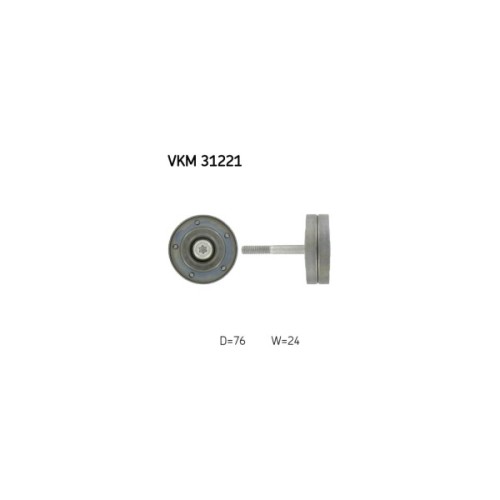 Натяжний ролик ременя поліклинового (приводного) SKF VKM 31221 дозволить зробити заміну зношеної/зламаної деталі, поліпшити ступінь натягу ременя, а також стабільність роботи приводу ГРМ та двигуна автомобіля. Всі деталі ролика виконані з матеріалів, високої якості, що дозволить забезпечити тривалий термін експлуатації деталі. Зовнішній діаметр становить 76 мм. Деталь має висоту 24 мм.