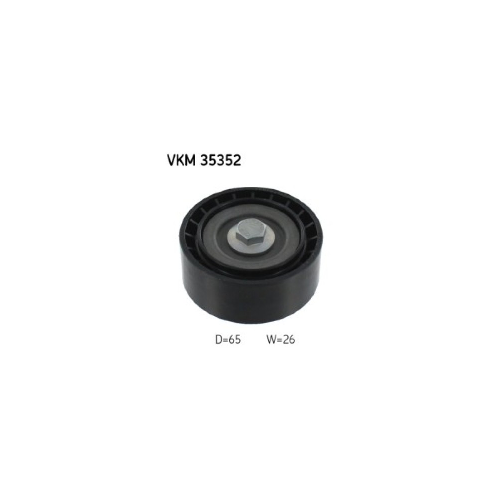 Натяжний ролик ременя поліклинового (приводного) SKF VKM 35352 дозволить зробити заміну зношеної/зламаної деталі, поліпшити ступінь натягу ременя, а також стабільність роботи приводу ГРМ та двигуна автомобіля. Всі деталі ролика виконані з матеріалів, високої якості, що дозволить забезпечити тривалий термін експлуатації деталі. Зовнішній діаметр становить 65 мм. Деталь має висоту 26 мм.