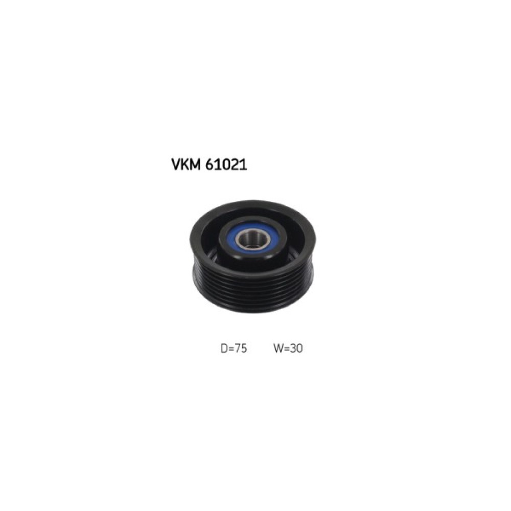 Натяжний ролик ременя поліклинового (приводного) SKF VKM 61021 дозволить зробити заміну зношеної/зламаної деталі, поліпшити ступінь натягу ременя, а також стабільність роботи приводу ГРМ та двигуна автомобіля. Всі деталі ролика виконані з матеріалів, високої якості, що дозволить забезпечити тривалий термін експлуатації деталі. Зовнішній діаметр становить 75 мм. Деталь має висоту 30 мм.