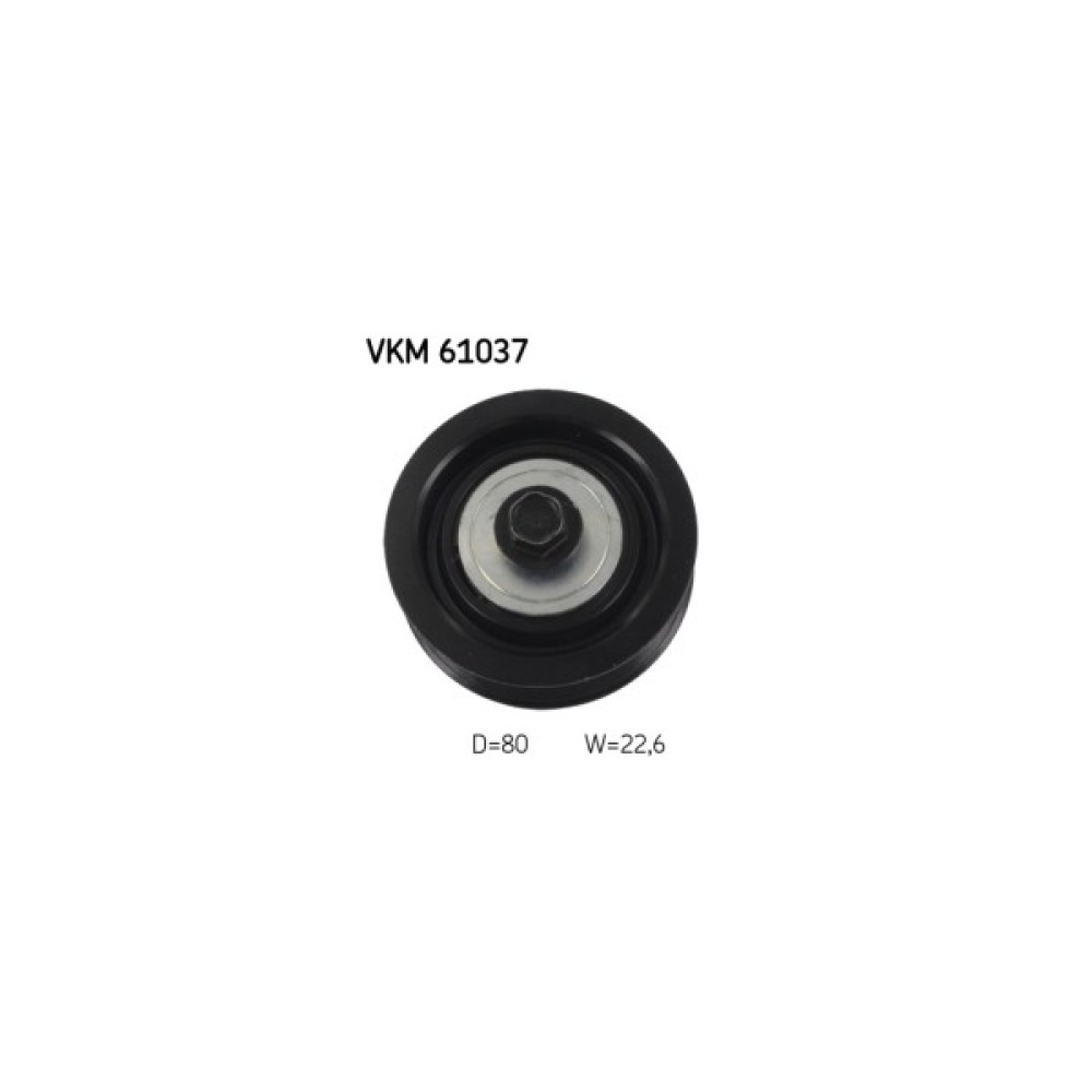 Натяжний ролик ременя поліклинового (приводного) SKF VKM 61037 дозволить зробити заміну зношеної/зламаної деталі, поліпшити ступінь натягу ременя, а також стабільність роботи приводу ГРМ та двигуна автомобіля. Всі деталі ролика виконані з матеріалів, високої якості, що дозволить забезпечити тривалий термін експлуатації деталі. Зовнішній діаметр становить 80 мм. Деталь має висоту 22.6 мм.
