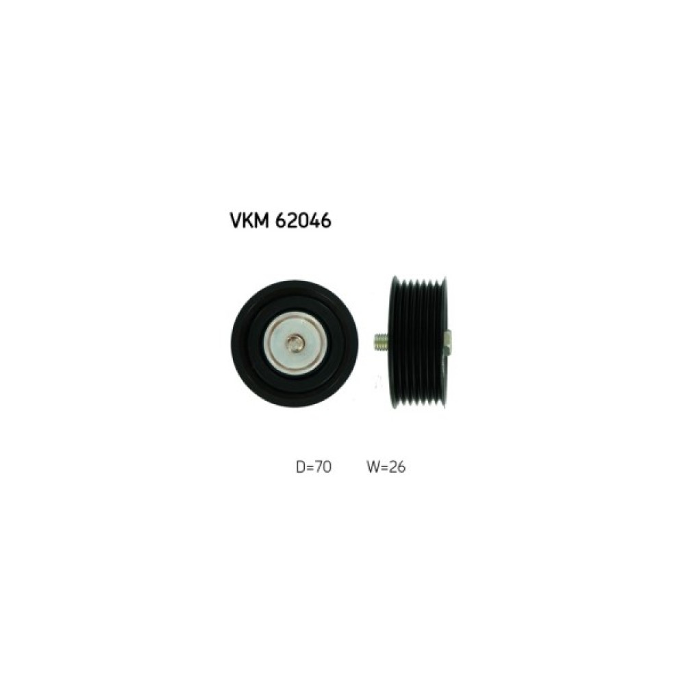 Обвідний ролик ременя поліклинового (приводного) SKF VKM 62046 дозволить зробити заміну зношеної/зламаної деталі, поліпшити ступінь натягу ременя, а також стабільність роботи приводу ГРМ та двигуна автомобіля. Всі деталі ролика виконані з матеріалів, високої якості, що дозволить забезпечити тривалий термін експлуатації деталі. Зовнішній діаметр становить 70 мм. Деталь має висоту 26 мм.