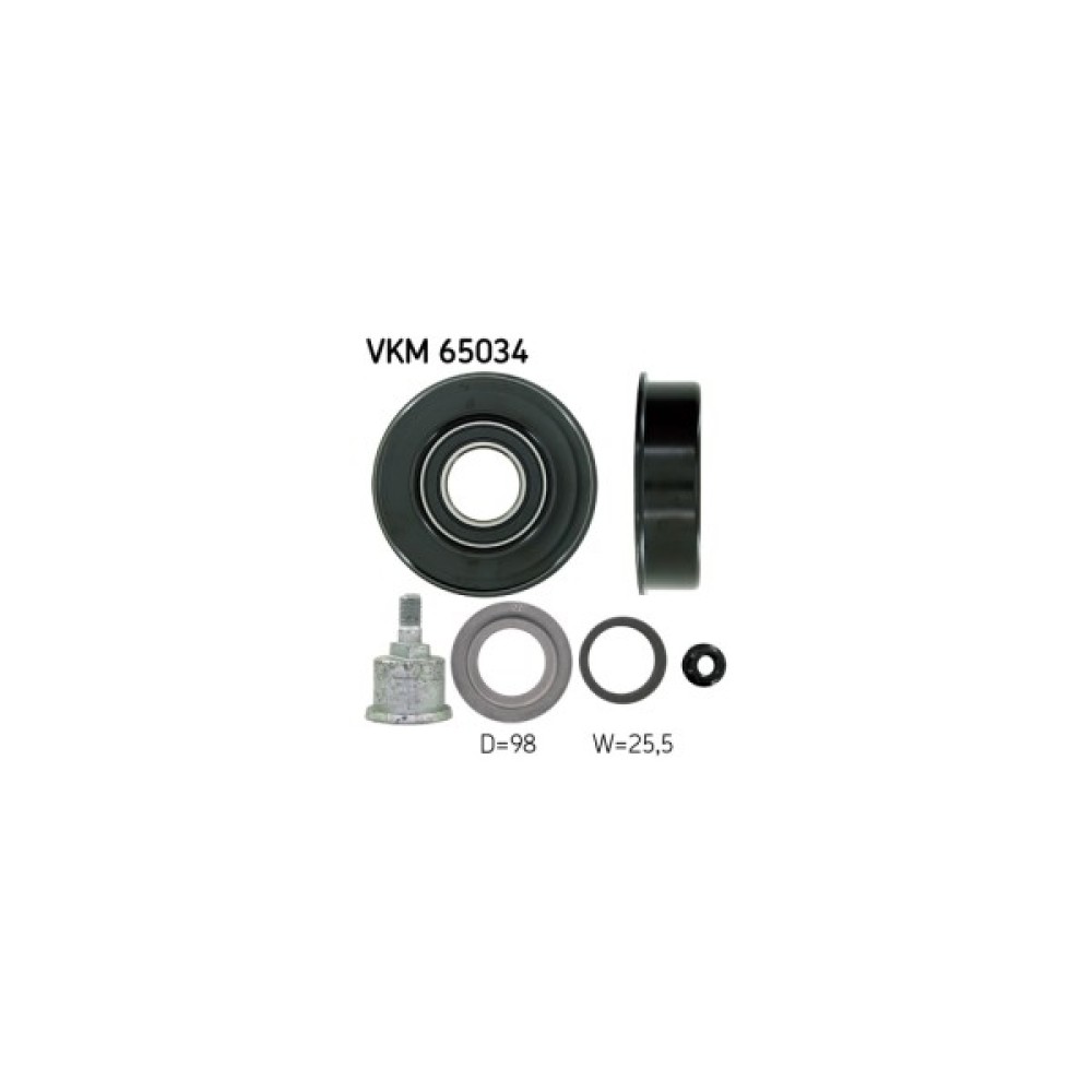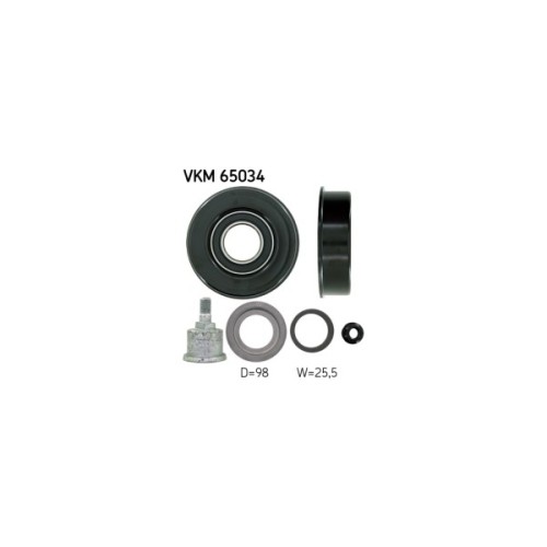 Обвідний ролик ременя поліклинового (приводного) SKF VKM 65034 дозволить зробити заміну зношеної/зламаної деталі, поліпшити ступінь натягу ременя, а також стабільність роботи приводу ГРМ та двигуна автомобіля. Всі деталі ролика виконані з матеріалів, високої якості, що дозволить забезпечити тривалий термін експлуатації деталі. Зовнішній діаметр становить 98 мм. Деталь має висоту 25.5 мм.