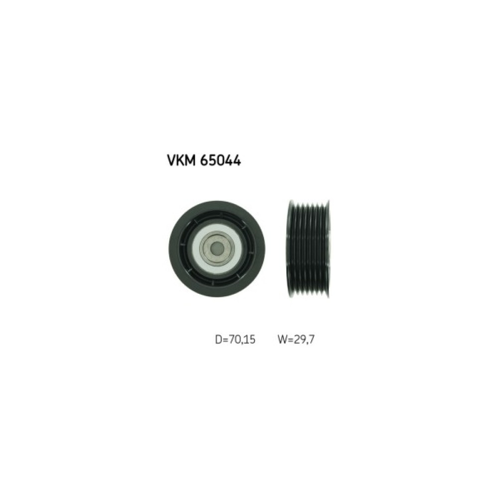 Обвідний ролик ременя поліклинового (приводного) SKF VKM 65044 дозволить зробити заміну зношеної/зламаної деталі, поліпшити ступінь натягу ременя, а також стабільність роботи приводу ГРМ та двигуна автомобіля. Всі деталі ролика виконані з матеріалів, високої якості, що дозволить забезпечити тривалий термін експлуатації деталі. Зовнішній діаметр становить 70 мм. Деталь має висоту 29.7 мм.