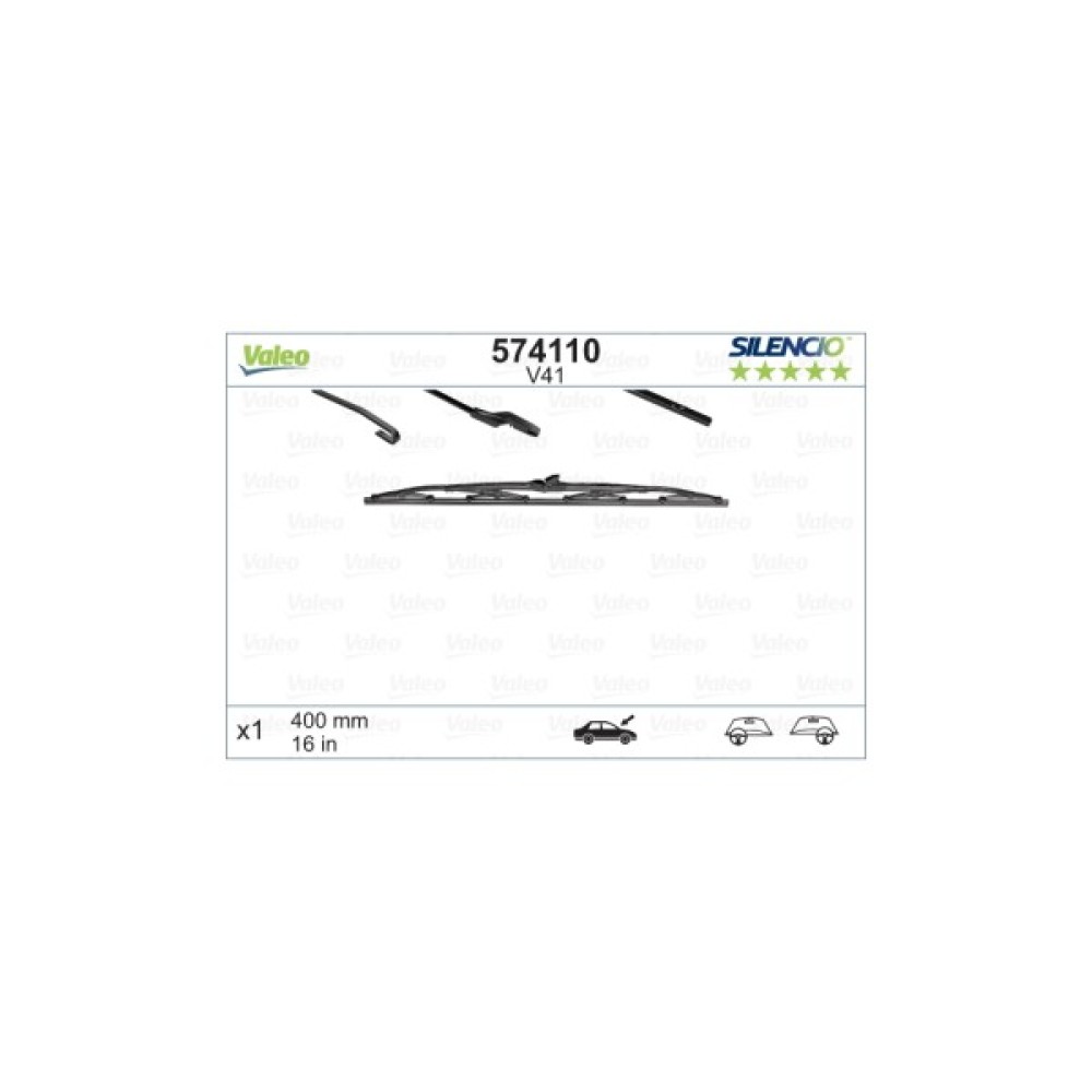 Двірники для авто від бренду Valeo моделі 574110 призначений спеціально для видалення різної вологи і забруднень з вітрового скла транспортного засобу. Наявність такого пристрою на лобовому склі автомобіля, є одним з важливих параметрів для безпеки водія. Складається даний пристрій з важеля, а також гумової щітки. Прибирає воду з поверхні скла завдяки щітці, яка рухається вгору і вниз. Є можливість регулювати швидкість руху щітки, існують кілька рівнів швидкості. Рекомендується проводити полірування скла, так як це впливає на сприятливу роботу двірників, робота відбувається набагато ефективніше, швидше, а також збільшується максимальний час експлуатації. Бажано хоча б раз на рік знімати двірники з транспортного засобу і промивати у воді. Виготовлений з високоякісних матеріалів, досить міцний. Кожен вид двірників має свої плюс і мінуси в різних ситуаціях. Дані склоочисники є каркасними. Мають невисоку вартість і просту конструкцію.