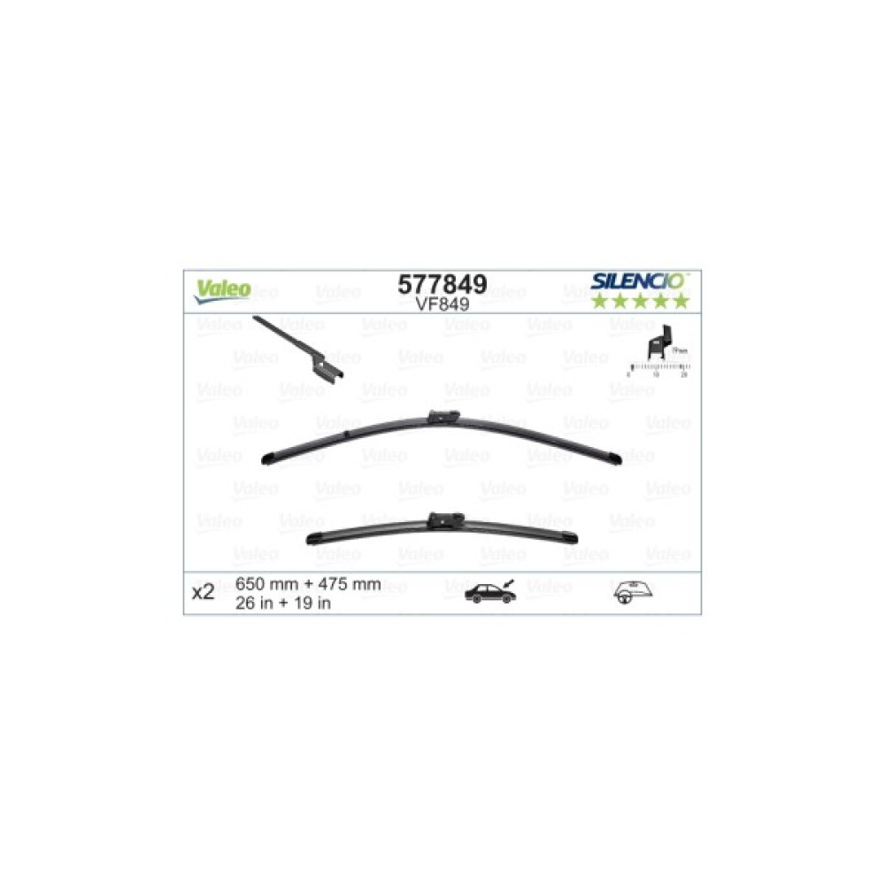 Безкаркасний склоочисник Valeo 577849 виготовлений з сировини високої якості. В основу безкаркасної конструкції входить пружна металева пластина, яка забезпечує щільний притиск двірника по всій поверхні вітрового скла не залежно від радіуса його кривизни. Дана пластина повністю захована в корпус, що виключає виникнення корозії і продовжує термін служби. Сам корпус виготовлений у вигляді спойлера, для додаткового притиску на високій швидкості. Лезо склоочисника нейтрально до впливу компонентів омивача скла, воно зберігає свою м'якість і еластичність при тривалому впливі сонячних променів.