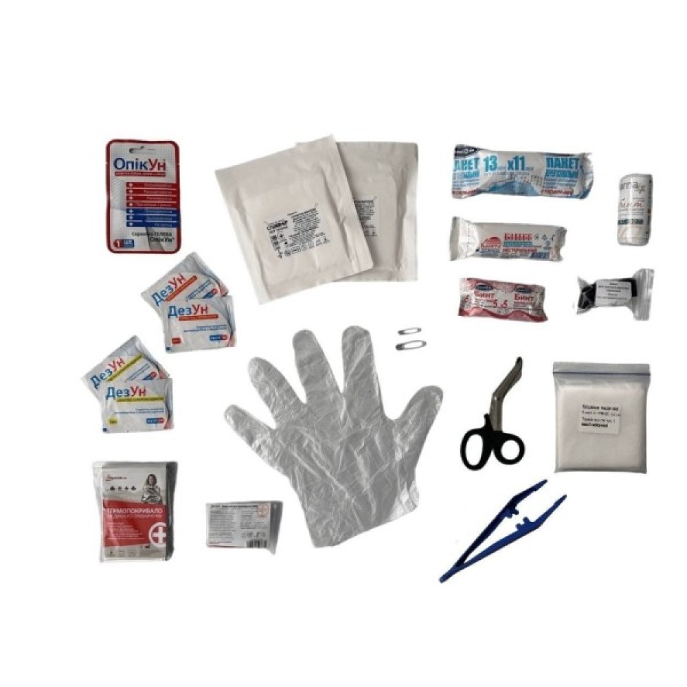 • Пакет перев'язувальний стерильний (13 см х 11 см) - 1 шт.