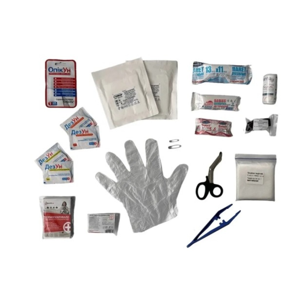 Це набір виробів медичного призначення, оснащений антисептичними, дезінфікуючими, реанімаційними, фіксуючими та іншими допоміжними засобами для своєчасного надання першої медичної допомоги постраждалому при травмах, переломах, вивихах, втраті свідомості.