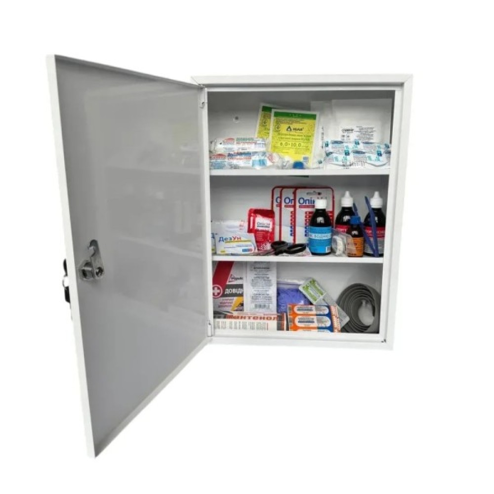 • Металевий ящик-аптечка з двома поличками (360 × 480 × 120 мм) — 1 шт