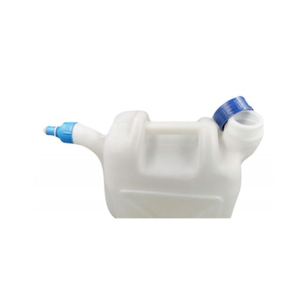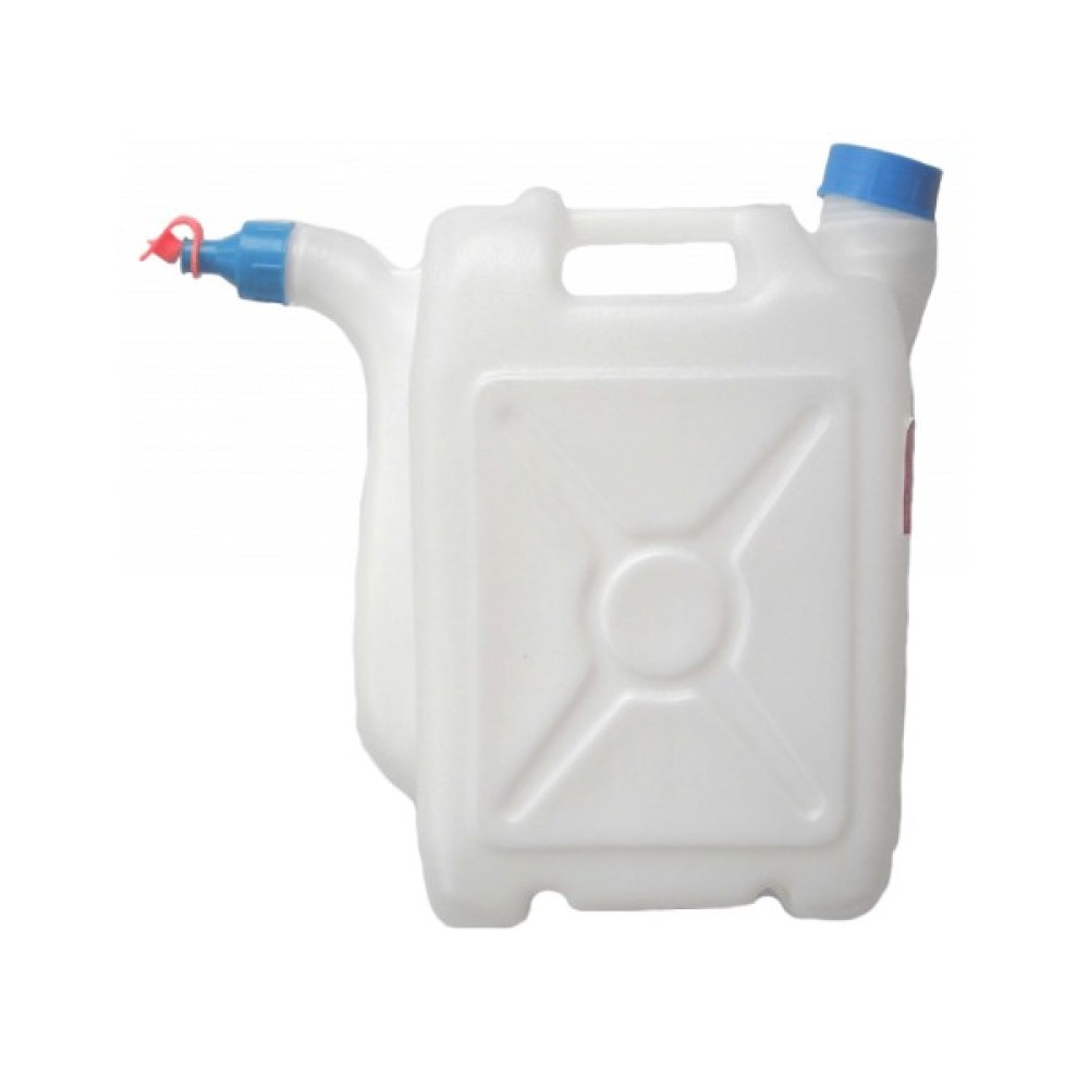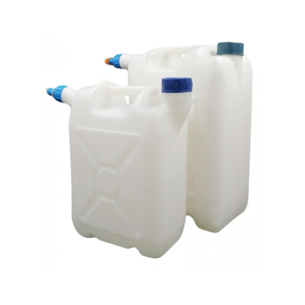 Каністра з носиком для зберігання харчових і нехарчових рідин. Кришка на різьбі, оснащена ущільнювальним вкладишем. За допомогою носика зручно розливати рідину в тару невеликих розмірів. Пластикова каністра стійка до хімічних речовин, механічних впливів, легка, універсальна і довговічна.