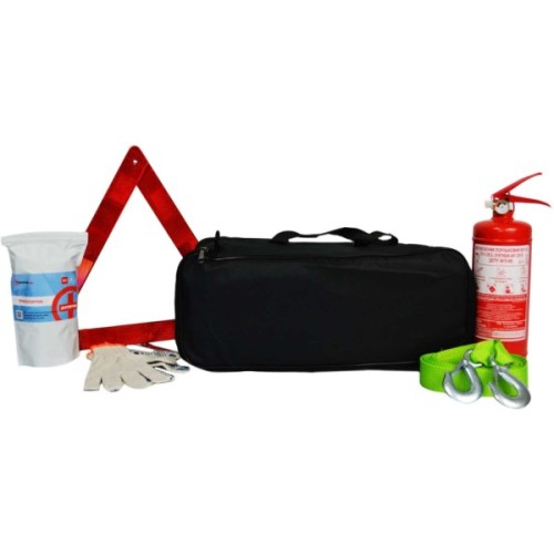 аптечка; буксирувальний трос; знак аварійної зупинки; вогнегасник; рукавички; сумка-органайзер