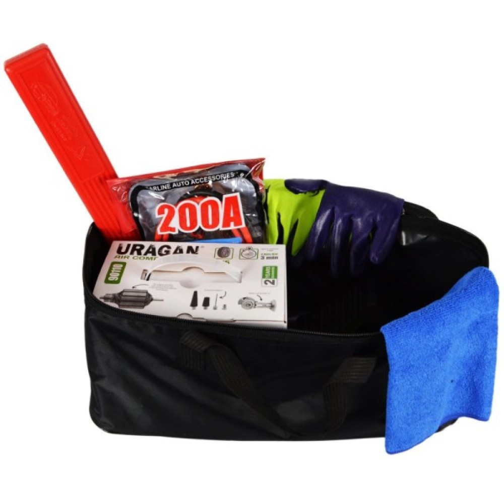 Пропонуємо до Вашої уваги набір автомобіліста з компресором. Зручна та містка сумка також знадобиться для інших автоаксесуарів. Незамінна річ для кожного автомобіліста!