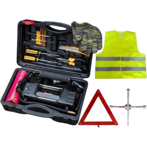 • Комплексное решение – набор включает инструменты для ремонта шин и элементы безопасности