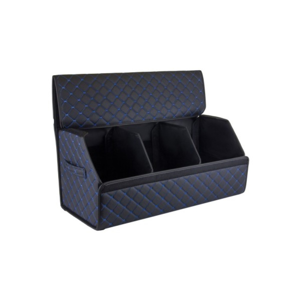 Органайзер для авто EVAtech ECO L — зручно зберігайте всі необхідні речі, організувавши і звільнивши простір у багажнику. Розбірна конструкція Органайзер у багажник виконаний з матеріалів, що мають водовідштовхуючі властивості. Чорний колір органайзеру та підкладу у поєднанні зі шкіряною текстурою та армуючими нитками мають естетичний вигляд. Для міцності край оброблено чорною стрічкою з екошкіри.