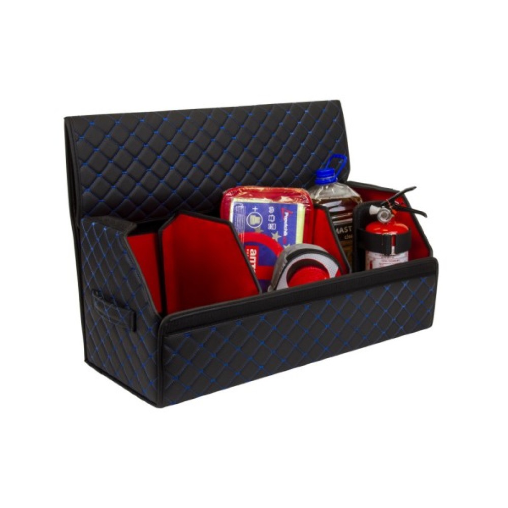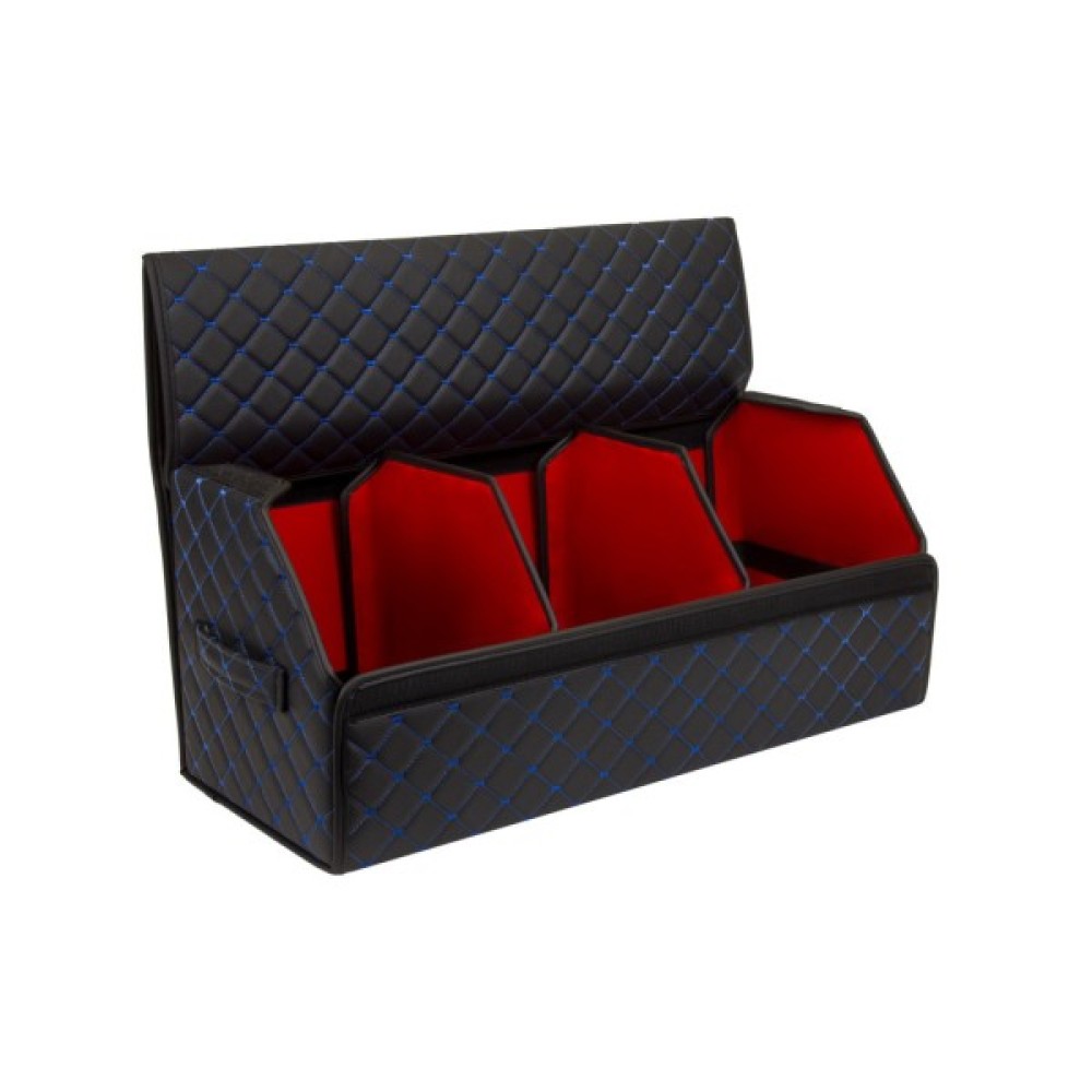 Органайзер для авто EVAtech ECO L — зручно зберігайте всі необхідні речі, організувавши і звільнивши простір у багажнику. Розбірна конструкція Органайзер у багажник виконаний з матеріалів, що мають водовідштовхуючі властивості. Чорний колір органайзеру та підкладу у поєднанні зі шкіряною текстурою та армуючими нитками мають естетичний вигляд. Для міцності край оброблено чорною стрічкою з екошкіри.