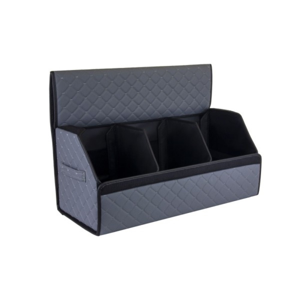 Органайзер для авто EVAtech ECO L — зручно зберігайте всі необхідні речі, організувавши і звільнивши простір у багажнику. Розбірна конструкція Органайзер у багажник виконаний з матеріалів, що мають водовідштовхуючі властивості. Чорний колір органайзеру та підкладу у поєднанні зі шкіряною текстурою та армуючими нитками мають естетичний вигляд. Для міцності край оброблено чорною стрічкою з екошкіри.