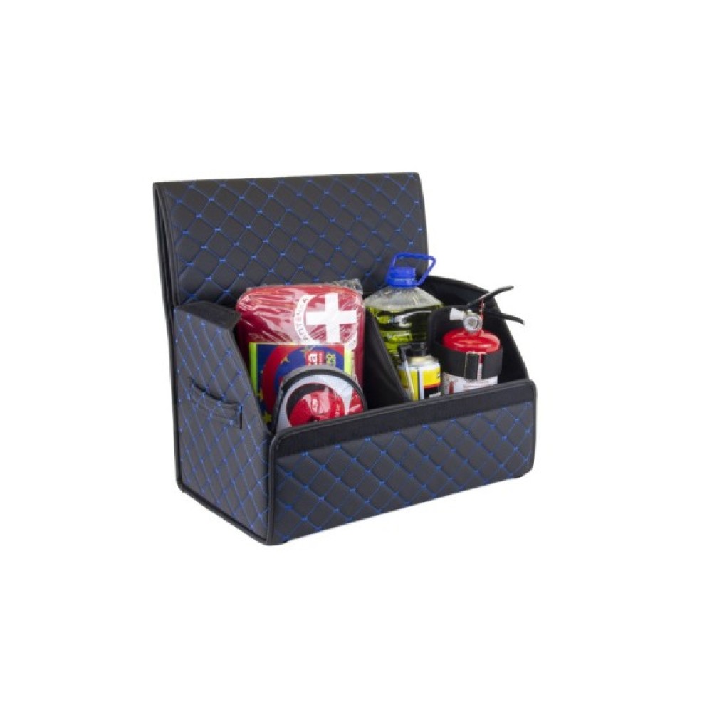 Органайзер для авто EVAtech ECO M — зручно зберігайте всі необхідні речі, організувавши і звільнивши простір у багажнику. Розбірна конструкція Органайзер у багажник виконаний з матеріалів, що мають водовідштовхуючі властивості. Чорний колір органайзеру та підкладу у поєднанні зі шкіряною текстурою та армуючими нитками мають естетичний вигляд. Для міцності край оброблено чорною стрічкою з екошкіри.