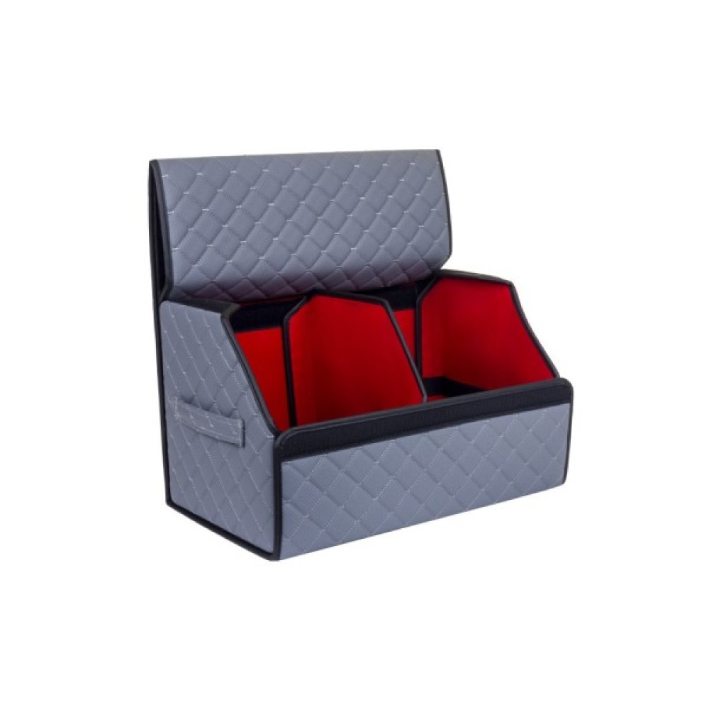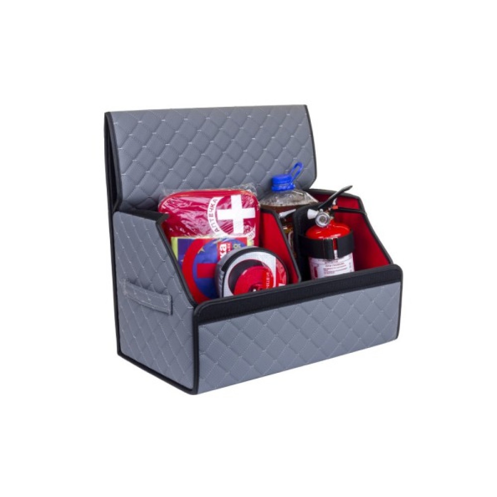 Органайзер для авто EVAtech ECO M — зручно зберігайте всі необхідні речі, організувавши і звільнивши простір у багажнику. Розбірна конструкція Органайзер у багажник виконаний з матеріалів, що мають водовідштовхуючі властивості. Чорний колір органайзеру та підкладу у поєднанні зі шкіряною текстурою та армуючими нитками мають естетичний вигляд. Для міцності край оброблено чорною стрічкою з екошкіри.