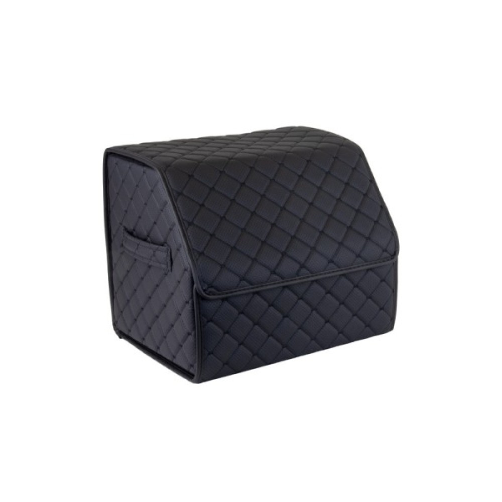 Органайзер для авто EVAtech ECO S — зручно зберігайте всі необхідні речі, організувавши і звільнивши простір у багажнику. Розбірна конструкція Органайзер у багажник виконаний з матеріалів, що мають водовідштовхуючі властивості. Чорний колір органайзеру та підкладу у поєднанні зі шкіряною текстурою та армуючими нитками мають естетичний вигляд. Для міцності край оброблено чорною стрічкою з екошкіри.