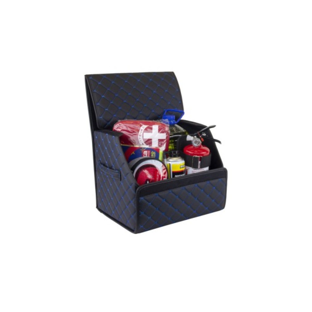 Органайзер для авто EVAtech ECO S — зручно зберігайте всі необхідні речі, організувавши і звільнивши простір у багажнику. Розбірна конструкція Органайзер у багажник виконаний з матеріалів, що мають водовідштовхуючі властивості. Чорний колір органайзеру та підкладу у поєднанні зі шкіряною текстурою та армуючими нитками мають естетичний вигляд. Для міцності край оброблено чорною стрічкою з екошкіри.