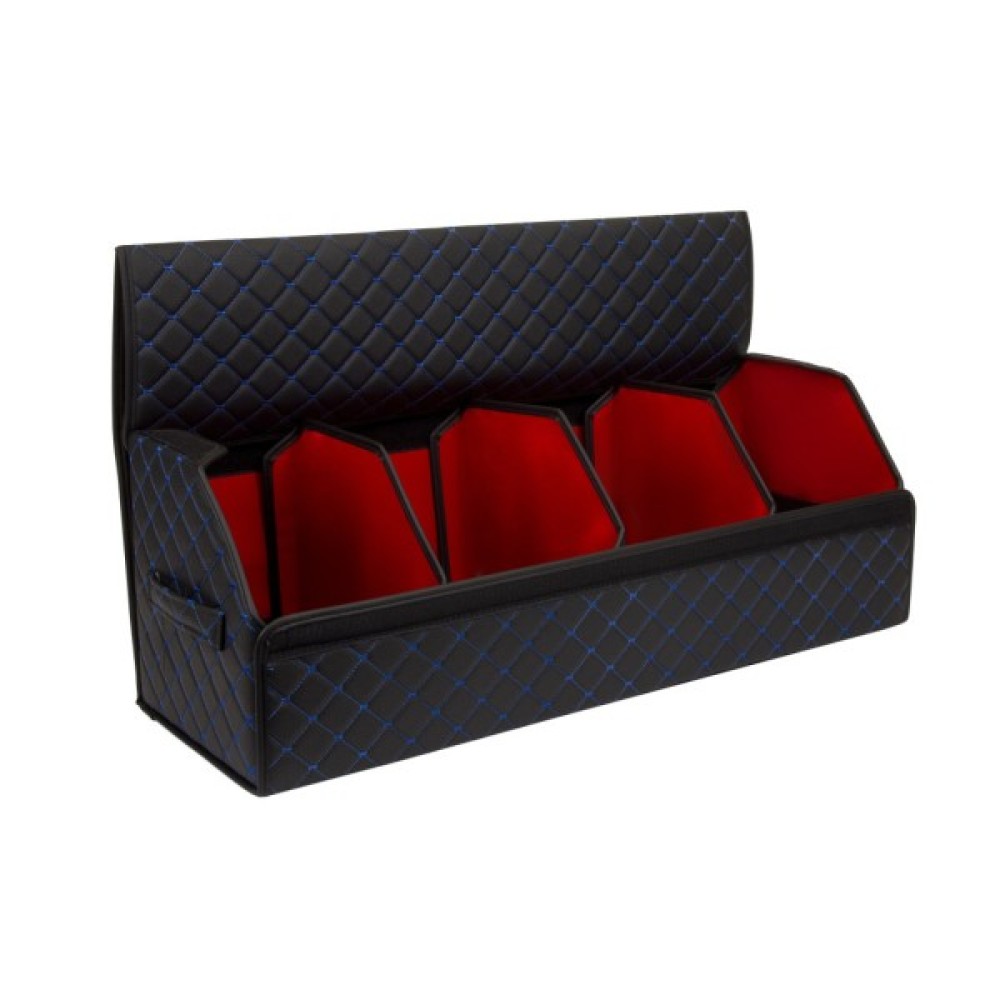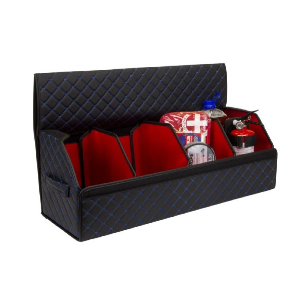 Органайзер для авто EVAtech ECO XL — зручно зберігайте всі необхідні речі, організувавши і звільнивши простір у багажнику. Розбірна конструкція Органайзер у багажник виконаний з матеріалів, що мають водовідштовхуючі властивості. Чорний колір органайзеру та підкладу у поєднанні зі шкіряною текстурою та армуючими нитками мають естетичний вигляд. Для міцності край оброблено чорною стрічкою з екошкіри.