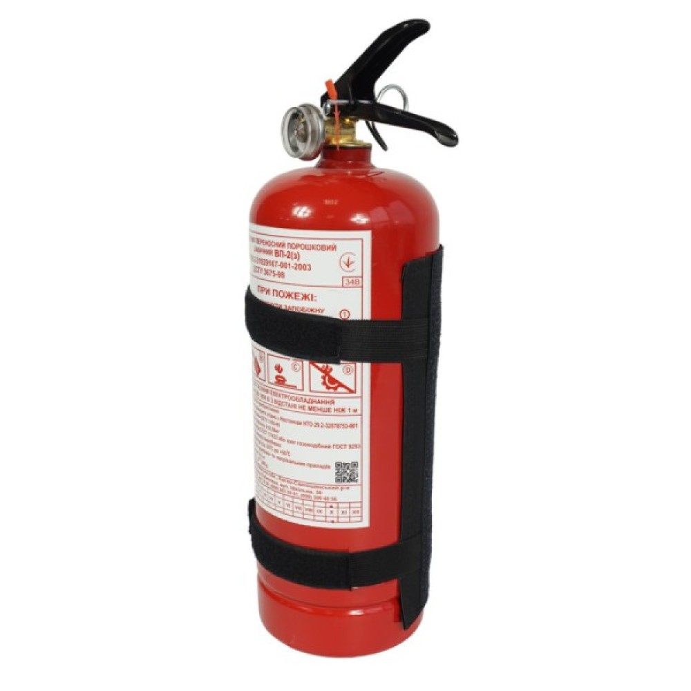 Вогнегасник порошковий ВП-2 з текстильним кріпленням - призначенний для гасіння пожеж тліючих матеріалів, легкозаймистих рідин, електричних і газових установок під напругою не більше 1000 Вт на транспортних засобах. Оснащується вантажний і легковий автомобільний транспорт, сільськогосподарська техніка, пожежні щити на промислових і складських об'єктах, складах ПММ і автозаправних станціях.