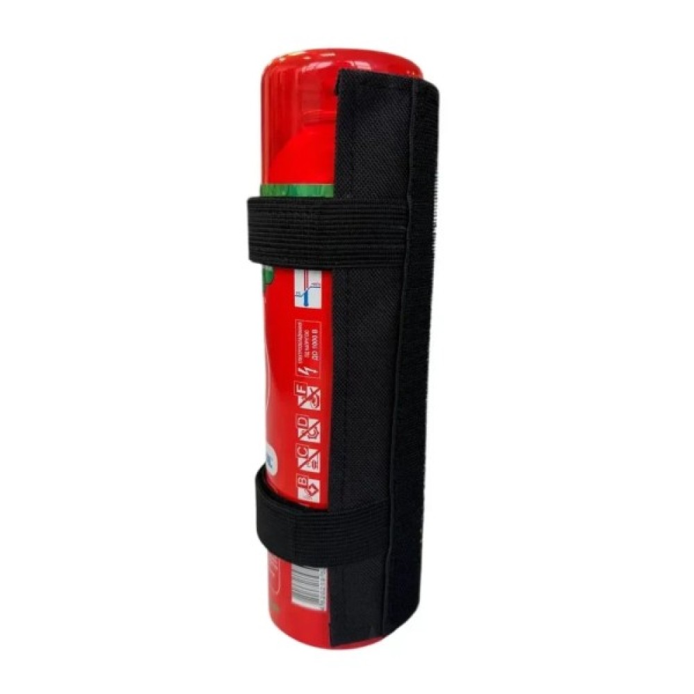 Завдяки невеликим розмірам і спеціальному кріпленню, вогнегасник легко розмістити в салоні або багажнику автомобіля. Універсальне кріплення складається з кронштейна-липучки та двох фіксаторів, що дозволяють швидко закріпити пристрій і при потребі оперативно дістати його. Регульована конструкція підходить для балонів діаметром 200–360 мм.