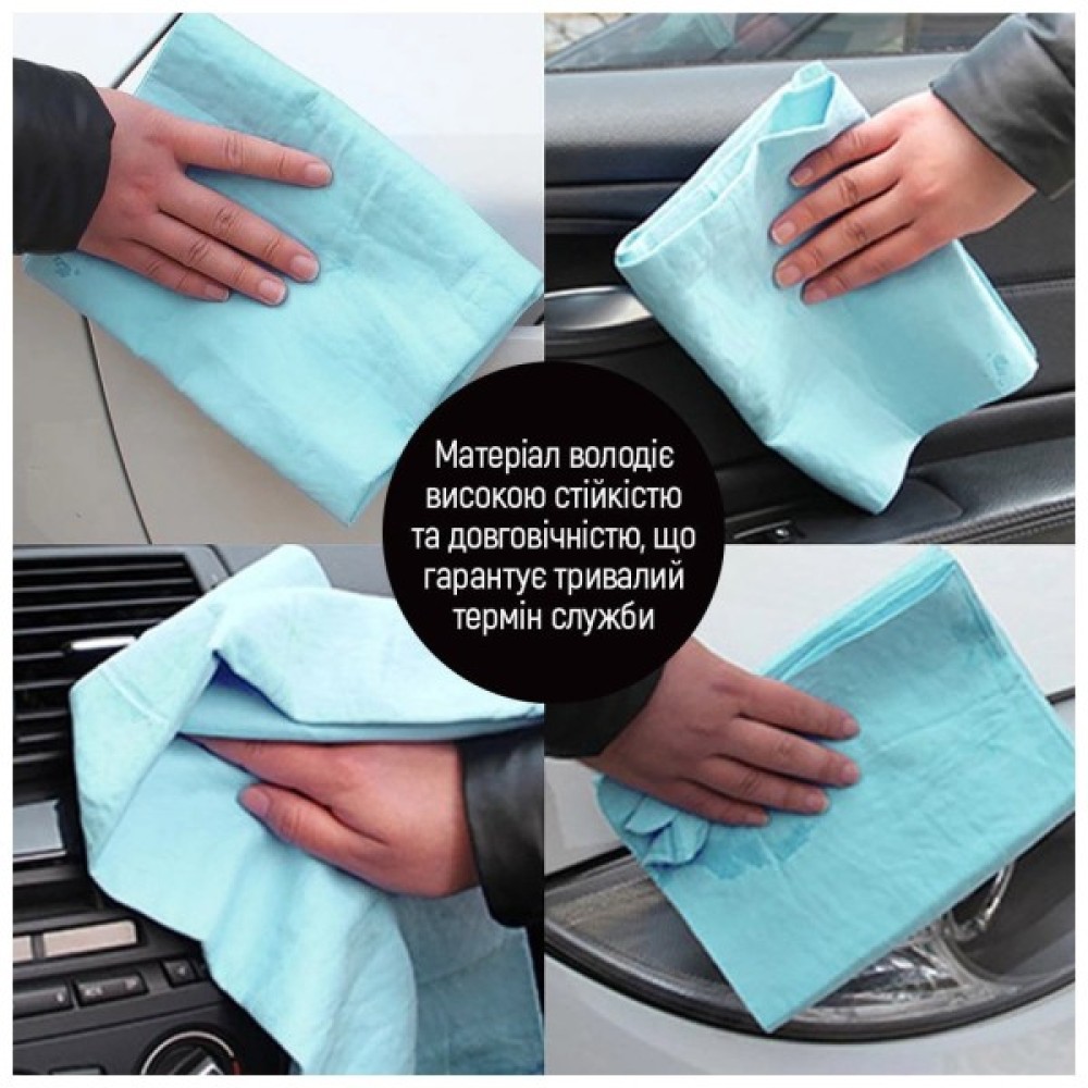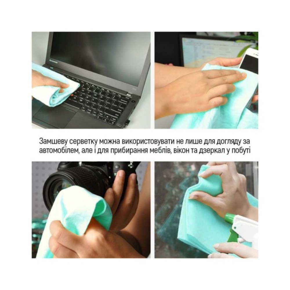 - Універсальність: Замшева серветка може бути використана не тільки для автомобілів, але й для прибирання меблів, вікон, та дзеркал в побуті