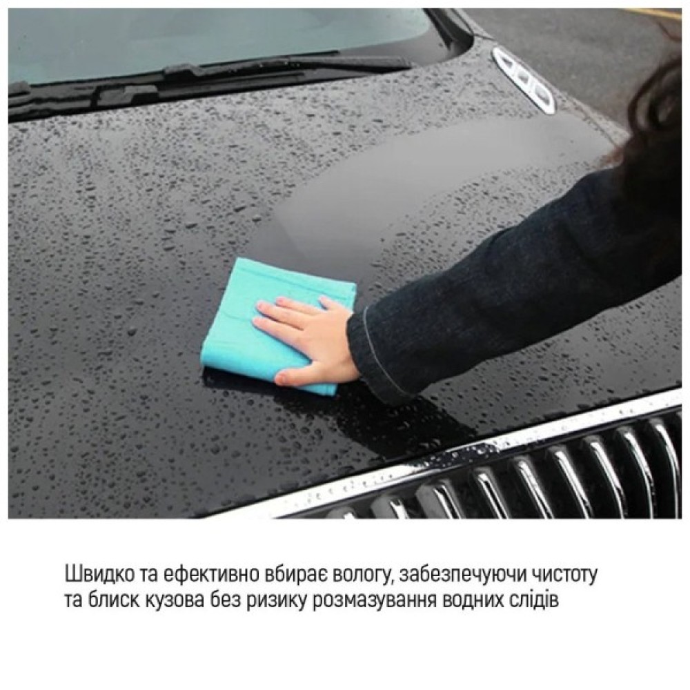 - Гігроскопічність: Здатність швидко та ефективно вбирати вологу, що забезпечує чистоту і сяйво кузова без ризику розмазування водних слідів