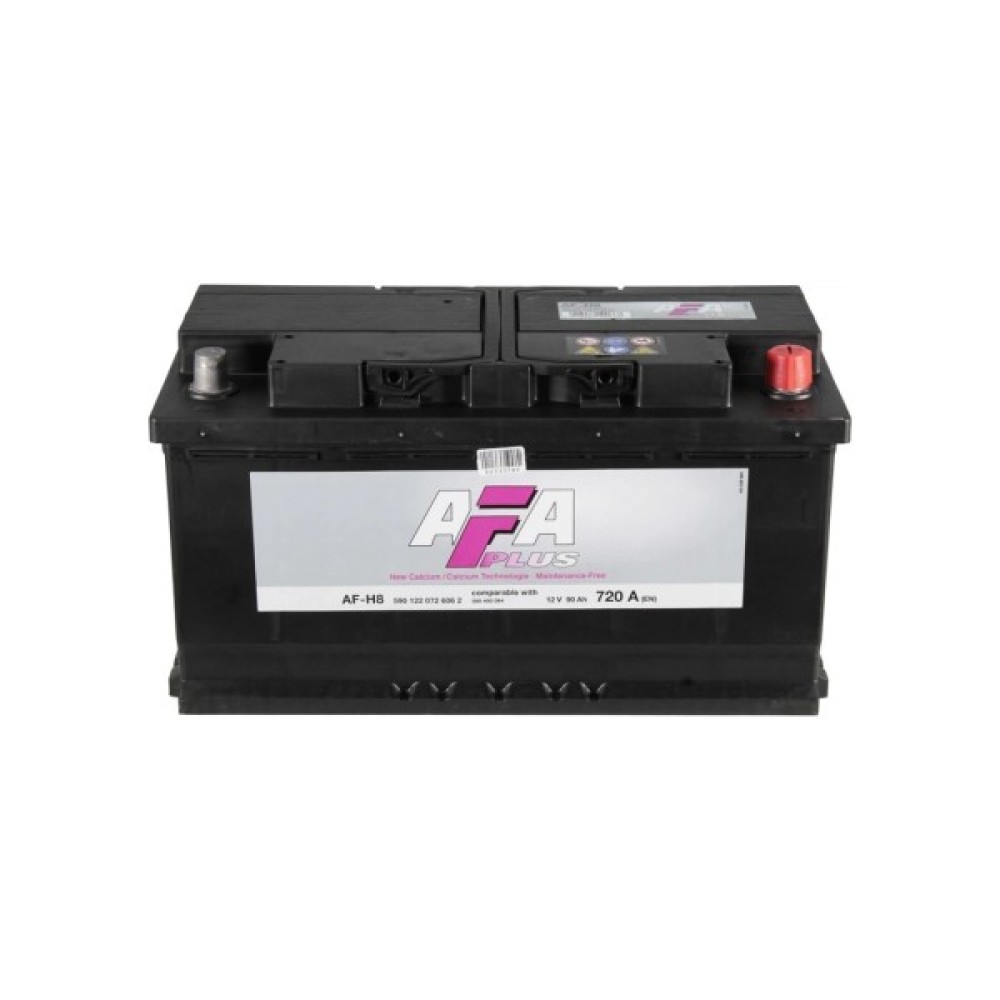 AFA 90Ah-12V (590 122 072) — потужний і довговічний акумулятор, який забезпечує надійний запуск двигуна та стабільну роботу автомобільних електросистем у будь-яких умовах експлуатації.