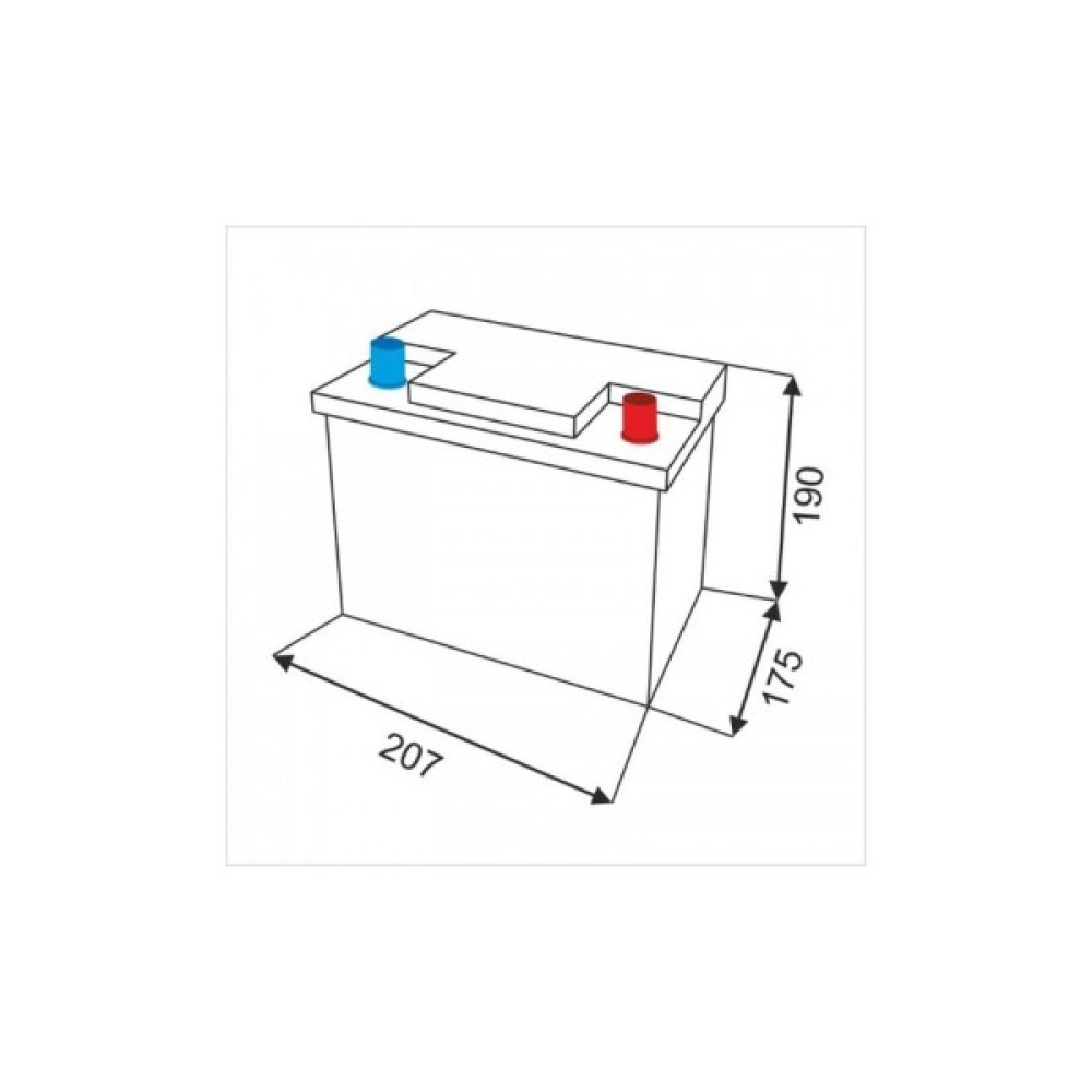 Конструкція акумулятора передбачає стандартні конусні клеми (euro) та європейський тип корпусу, що робить його сумісним з більшістю легкових автомобілів на ринку. Тип полярності зворотній — - / + (євро), що слід враховувати під час установки. З параметрами 207 мм у довжину, 175 мм у ширину та 190 мм у висоту, він легко інтегрується в підкапотний простір ідеально підходить для автомобілів будь-якого класу.