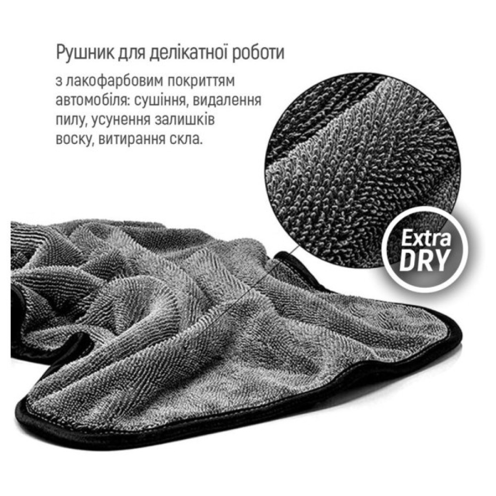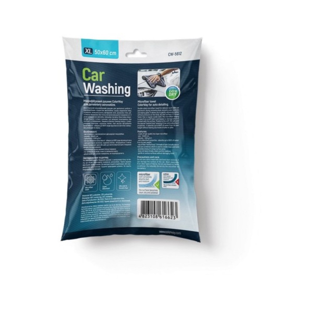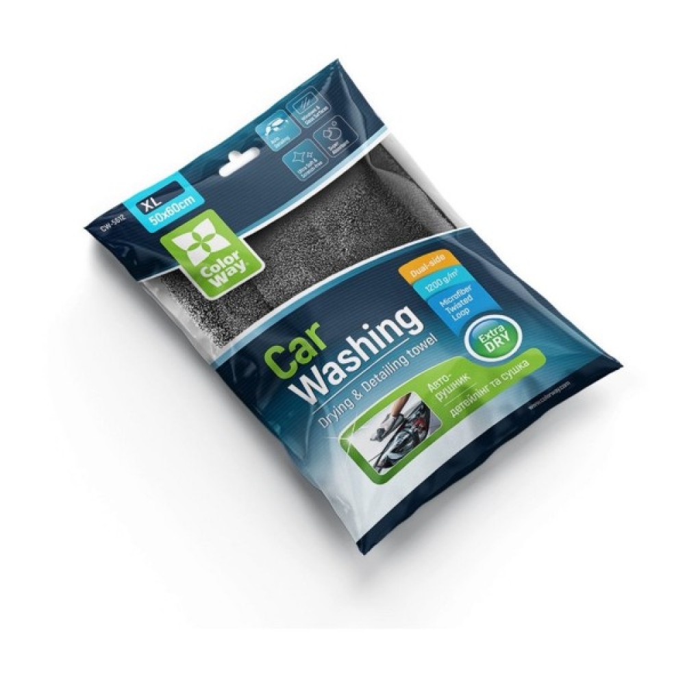 Мікрофіброве рушник ColorWay Extra Dry 1200gs - двосторонній мікрофіброве рушник для делікатної роботи з лакофарбовим покриттям автомобіля: сушіння, видалення пилу, усунення залишків воску, витирання скла. Дозволяє м'яко, абсолютно безпечно, без тиску на кузов висушити поверхню в 2-3 рази швидше за звичайну замшеву ганчірку. Окантовка мікрофібри зшита з м'якої тканини і не залишає пошкоджень при контакті з поверхнею. Завдяки м'якому тонкому ворсу та спеціальному плетінню «кручена петля» має екстра абсорбуючі властивості - вбирає до 600% води від власної ваги без залишків розводів та ворсу, що дозволяє використовувати рушник також для протирання скляних та делікатних поверхонь таких як (вікна, душові кабіни, дзеркала) , хромовані вироби та інше)