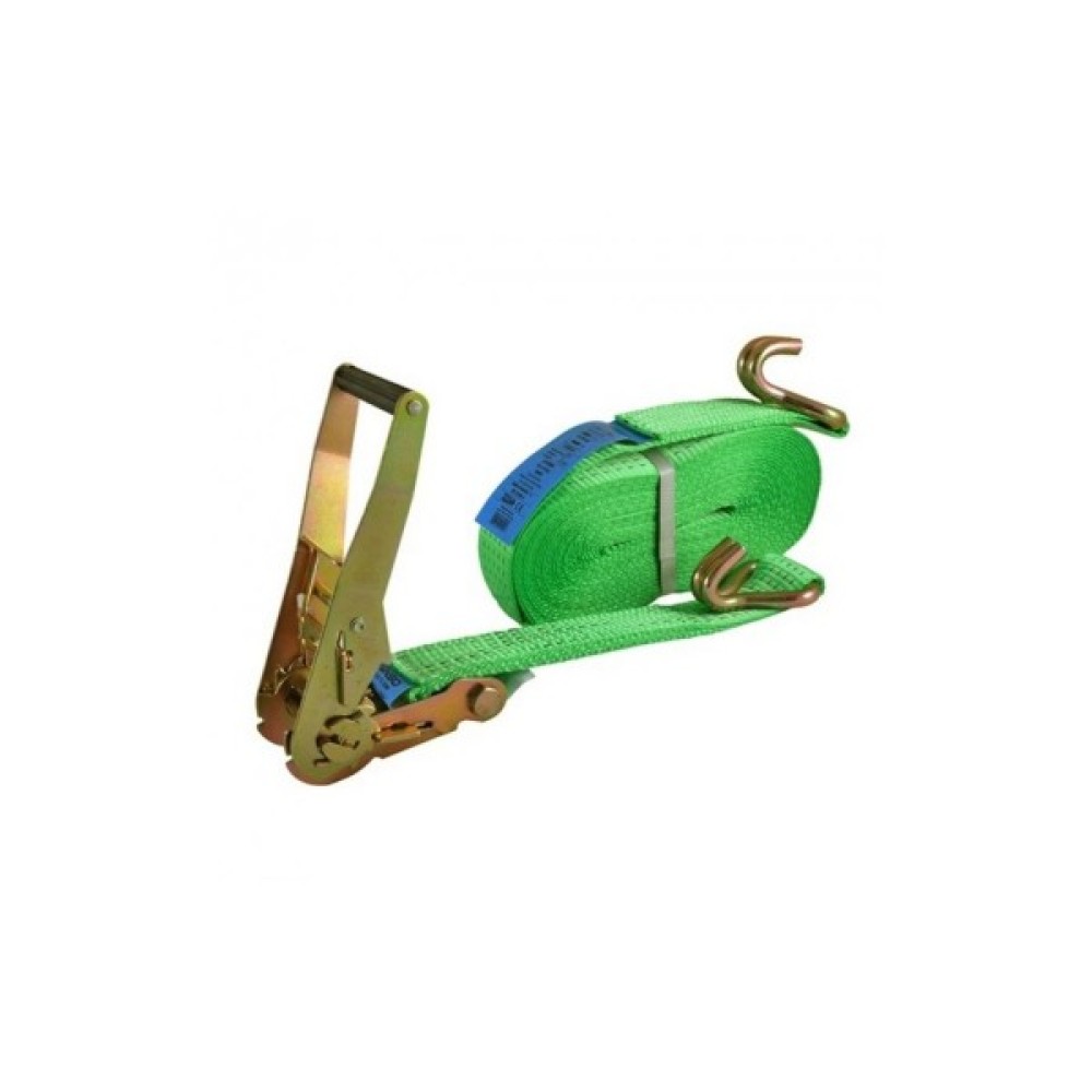 Ремінь оснащений повноцінною храповою системою для зручного і надійного закріплення вантажу. Надійна конструкція здатна витримувати тягове зусилля в межах 5 т. Довжина основної частини ременя становить оптимальні 12 м, а ширина 50 мм. Великим плюсом ременя є матеріал виготовлення, що має низку корисних характеристик. Поліестер буде міцно тримати вантаж частково завдяки його еластичності. Легкий ефект піддавання вантажу сприяє кращому зчепленню, меньшому зносу ременя в тривалій і короткостроковій перспективі. Текстильна, еластична стрічка не пошкоджує вантаж і гарантує збереження товарного вигляду предметів, що перевозяться.