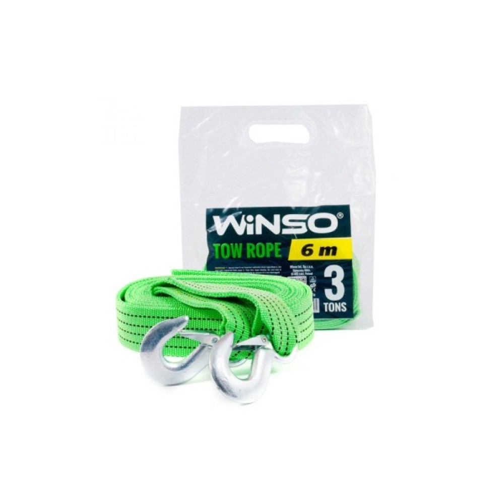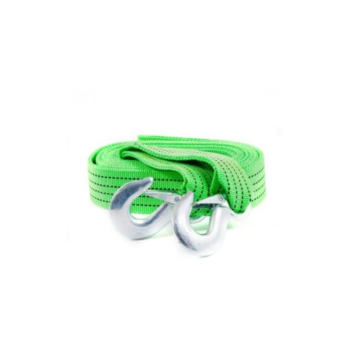 Дана модель відноситься до категорії тросів стрічкового типу. Вони не займають багато місця, з легкістю змотуються і не дуже важкі, що дозволяє возити їх в багажнику без дискомфорту. У довжину представлений буксирувальний трос досягає 6 метрів, а максимально допустима на нього навантаження має бути не більше 3 тонн. Здійснювати буксирування транспортного засобу можна як при гнучкому, так і при жорсткому зчепленні. Сам трос виготовлений з міцного і якісного синтетичного матеріалу (поліпропілену) яскравого зеленого кольору, тому буде помітний навіть на великій відстані і в темний час доби. Трос комплектується в поліетиленову сумочку. Зверніть увагу, що використовуючи буксирувальні троси, слід дотримуватися правил безпеки.