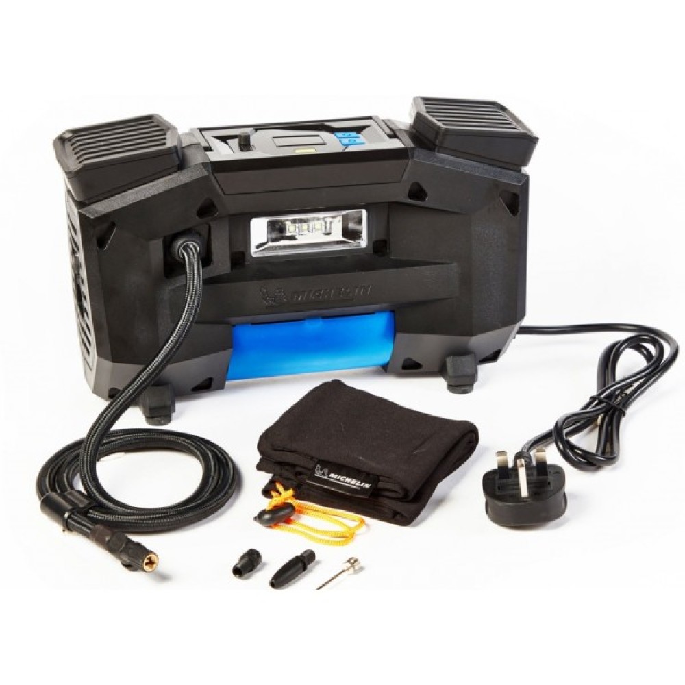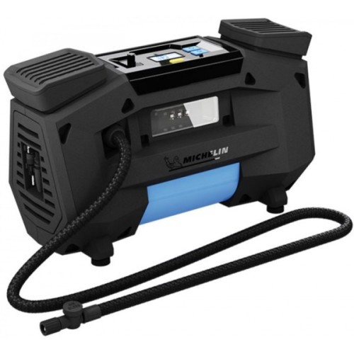 Компресор Michelin W12316 призначений для уникнення випадкових ушкоджень, зокрема пробиття або спущеного колеса. Незамінний пристрій в транспортному засобі для тих, кому важливе безпечне і комфортне використання автомобіля. Без проблем піднімає тиск в шинах до необхідного рівня за рахунок великого максимального тиску, який становить 8 атм. Досить швидко накачає необхідне спущене колесо за допомогою своєї продуктивності. Дана модель працює від мережі. Компресор з цифровим манометром, що дозволить орієнтуватися на показники і з легкістю піднімати тиск до потрібного рівня. Завдяки довжині кабелю живлення і довжині повітряного шланга, є можливість використовувати прилад на пристойній відстані від необхідного колеса. Корпус виготовлений з міцного матеріалу, який збільшує надійність пристрою, а також збільшує максимальний час експлуатації. Пристрій використовується тоді, коли з різних причин в автомобільних шинах тиск стає менше нормального рівня. Досить якісна і дорога гума може піддаватися проколу шини, або стиснене повітря має можливість почати проникати через покришки. Для уникнення таких ситуацій використовується компресор.