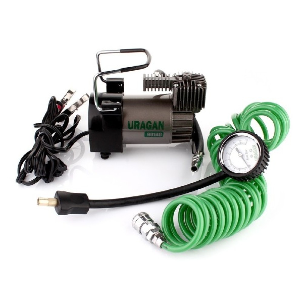 Автомобільний компресор URAGAN 90140 для автолюбителя, важлива зручна і безпечна експлуатація автомобіля. З різних причин тиск в автомобільних шинах стає менше нормального рівня. Іноді, навіть покупка дорогої і якісної гуми не страхує від проколу шини, або від факту, що рано, чи пізно стиснене повітря може почати проникати через стінки покришки. Кожен автомобіліст повинен знати як впоратись з цим головним болем. Тому автомобільний компресор URAGAN 90140 - є невід'ємною річчю в транспортному засобі. Саме він допоможе уникнути випадкового пробиття, або спущеного колеса. Компресор фірми URAGAN має здатність нагнітати до 10атмосфер (кг/см2), що дозволить без проблем підняти тиск в шинах до необхідного рівня. Також він досить швидко накачає ваше колесо R15, всього за пару хвилин, цьому сприяє продуктивність в 40л/хвилину. Також компресор оснащений аналоговим манометром, орієнтуючись на його показання ви з легкістю зможете підняти тиску до рекомендованого. У комплекті також йде довгий мідний кабель живлення (3м) від клем АКБ, міцний шланг (5,7м), що дозволить доставляти прилад до кожного колеса. Корпус виконаний з метала, ручка має м'яке покриття для зручності захоплення.
