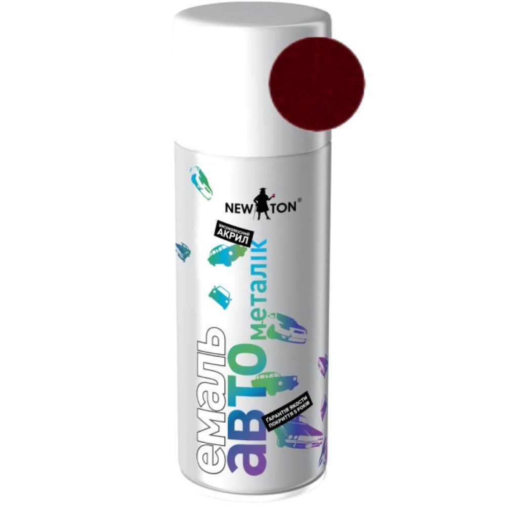 Емаль NEW TON авто металік - базове покриття у двокомпонентній системі «Металлік+Лак». Система включає акрилову емаль з високим вмістом металізованого пігменту, який надає покриттю оригінального ефекту «металік», і безбарвний акриловий автомобільний лак. Лак наноситься як заключний захисний шар, при цьому формує глибину кольору, посилює глянець. Поєднання зазначених компонентів дозволяє отримати міцне покриття, стійке до механічних та атмосферних впливів, яке не вигоряє на сонці і не втрачає блиску. Система «Металлік+Лак» розроблена спеціально для виконання дрібного ремонту, фарбування, реставрації лакофарбового покриття автомобілів, мотоциклів, моторолерів, велосипедів та інших транспортних засобів. Для зовнішніх та внутрішніх робіт. Площа покриття в залежності від кольору і товщини шару становить 0,8-1,0 м2 - 150 мл, 1,5-2,0 м 2 - 400мл. ¦Час висихання 10-15 хв при t +25ºС. На кришці балона реальний зразок кольору емалі. Як заключний шар через 30 хвилин після нанесення останнього шару емалі слід нанести безбарвний автомобільний Лак NEW TON. Обсяг 400 мл.