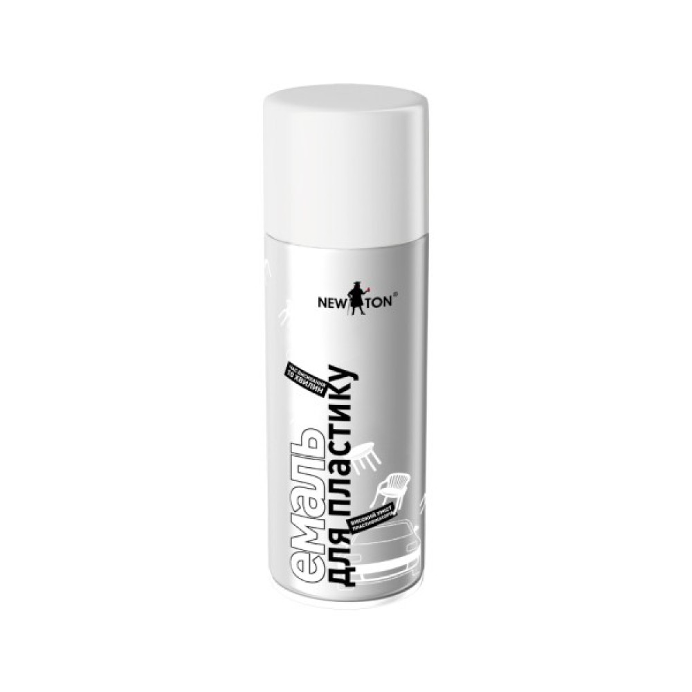 Емаль NEW TON для пластику - Швидкосохнуча акрилова емаль, стійка до механічних та атмосферних впливів. Відрізняється підвищеною еластичністю завдяки високому вмісту пластифікаторів. Для зовнішніх та внутрішніх робіт. Спеціально розроблена для фарбування та реставрації виробів із різних видів пластмаси: бамперів, молдингів, декоративних накладок, корпусів дзеркал. Можна використовувати для фарбування пластикових меблів, садових інструментів, вінілових огорож та інших виробів із пластику. Серія пропонує як гладкі, так і більш рельєфні структурні види покриттів. Площа покриття, залежно від товщини шару, становить 1,5–2,0 м2 — 400мл. Час висихання 7–10 хвилин за температури +25ºС.