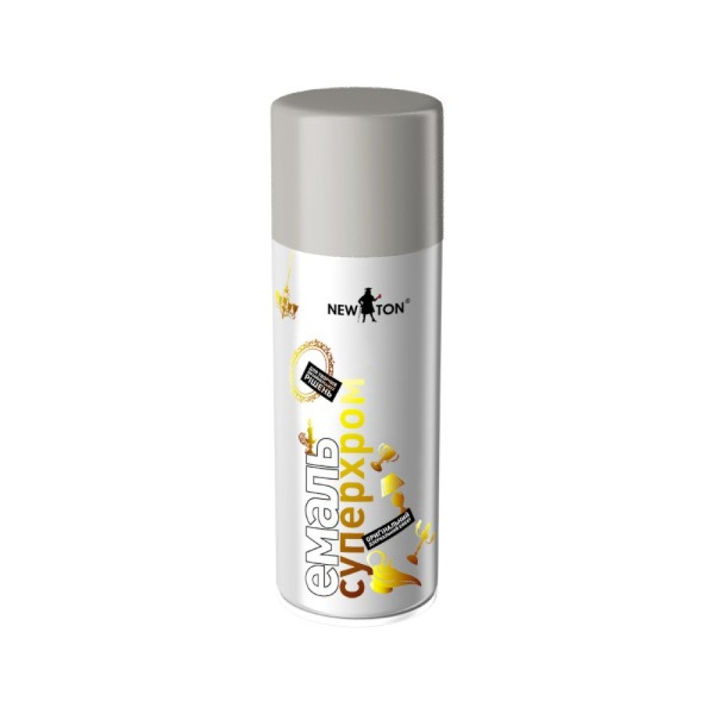 Эмаль NEW TON суперхром - Быстросохнущая эмаль на основе синтетических акриловых смол. Образует декоративное глянцевое покрытие с металлическим блеском. Обладает высокой отражающей способностью благодаря «зеркальному» эффекту хромирования. Для внутренних работ. Применяется для реставрации и декоративной покраски гладких поверхностей изделий из металла, дерева, стекла, керамики, некоторых видов пластмассы. Широко используется для окрашивания произведений искусства и элементов декора: картинных рам, гербов, кубков, фрагментов люстр, статуэток, подсвечников, а также икон. Внимание! Эмаль Суперхром рекомендуется использовать исключительно для декора внутри помещений. Покрытие неустойчиво к истиранию! Неустойчивость к истиранию и атмосферным воздействиям – общее свойство всех хромов в аэрозольной упаковке. Важно! Чётко придерживаться температурного режима: температура баллона, окружающей среды и окрашиваемой поверхности должна составлять +20–25ºС. С целью сохранения «зеркального» эффекта не рекомендуется покрывать окрашенную поверхность лаком.ƒ Площадь покрытия в зависимости от толщины слоя и цвета эмали составляет 2,0-2,5 м2. Время высыхания 7–10 минут при температуре +25ºС. ƒОбъём 150мл.