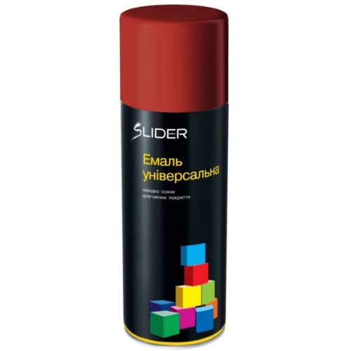 Емаль SLIDER універсальна - універсальна швидковисихаюча аерозольна емаль SLIDER - підходить для фарбування пластикових, дерев'яних та металевих основ. Має стійкість до вицвітання і втрати кольору. Велика палітра кольорів сприяє більш легкому вибору.