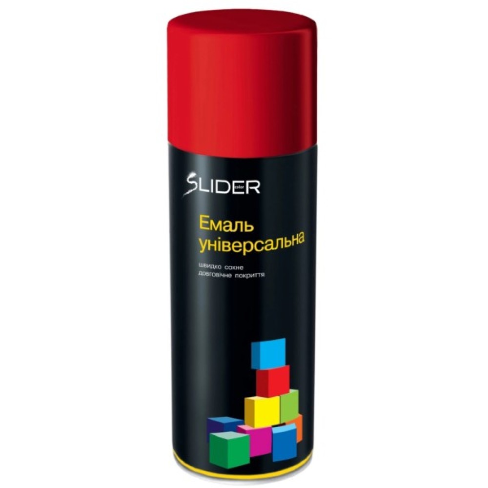 Емаль SLIDER універсальна - універсальна швидковисихаюча аерозольна емаль SLIDER - підходить для фарбування пластикових, дерев'яних та металевих основ. Має стійкість до вицвітання і втрати кольору. Велика палітра кольорів сприяє більш легкому вибору.