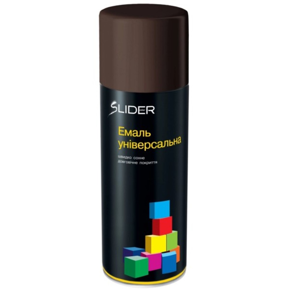 Емаль SLIDER універсальна - універсальна швидковисихаюча аерозольна емаль SLIDER - підходить для фарбування пластикових, дерев'яних та металевих основ. Має стійкість до вицвітання і втрати кольору. Велика палітра кольорів сприяє більш легкому вибору.