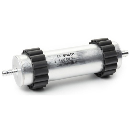 Паливний фільтр Bosch відрізняється високою якістю, як використовуваної сировини, так і процесу складання, що забезпечує необхідний ступінь очищення палива протягом усього експлуатаційного періоду. Вони забезпечують надійний захист системи дозування і вприску, для двигунів внутрішнього згоряння. Фільтруючий елемент, який використовує компанія Bosch, складається з поліефірного волокна і целюлозного паперу зі смоляним просоченням. Багатошаровий фільтруючий елемент затримує найдрібніші частинки пилу, іржі і сміття, розмір яких менше 0,01 мм, чим забезпечують 99% очищення палива. Ступінь затримання і накопичення сміття становить 15,34 г відповідно до стандарту SAE J905, що дає високу ефективність весь міжсервісний інтервал. Надійне закріплення фільтруючого елемента на каркасі забезпечує збереження форми і укладання протягом усього періоду експлуатації. Габаритні розміри паливних фільтрів Bosch точно відповідають оригінальним деталям, для швидкої і простої заміни. Паливні фільтри Bosch стійкі до температурних коливань і атмосферних явищ. Вони забезпечують герметичне з'єднання і перешкоджають надходженню палива в обхід фільтруючого елемента.