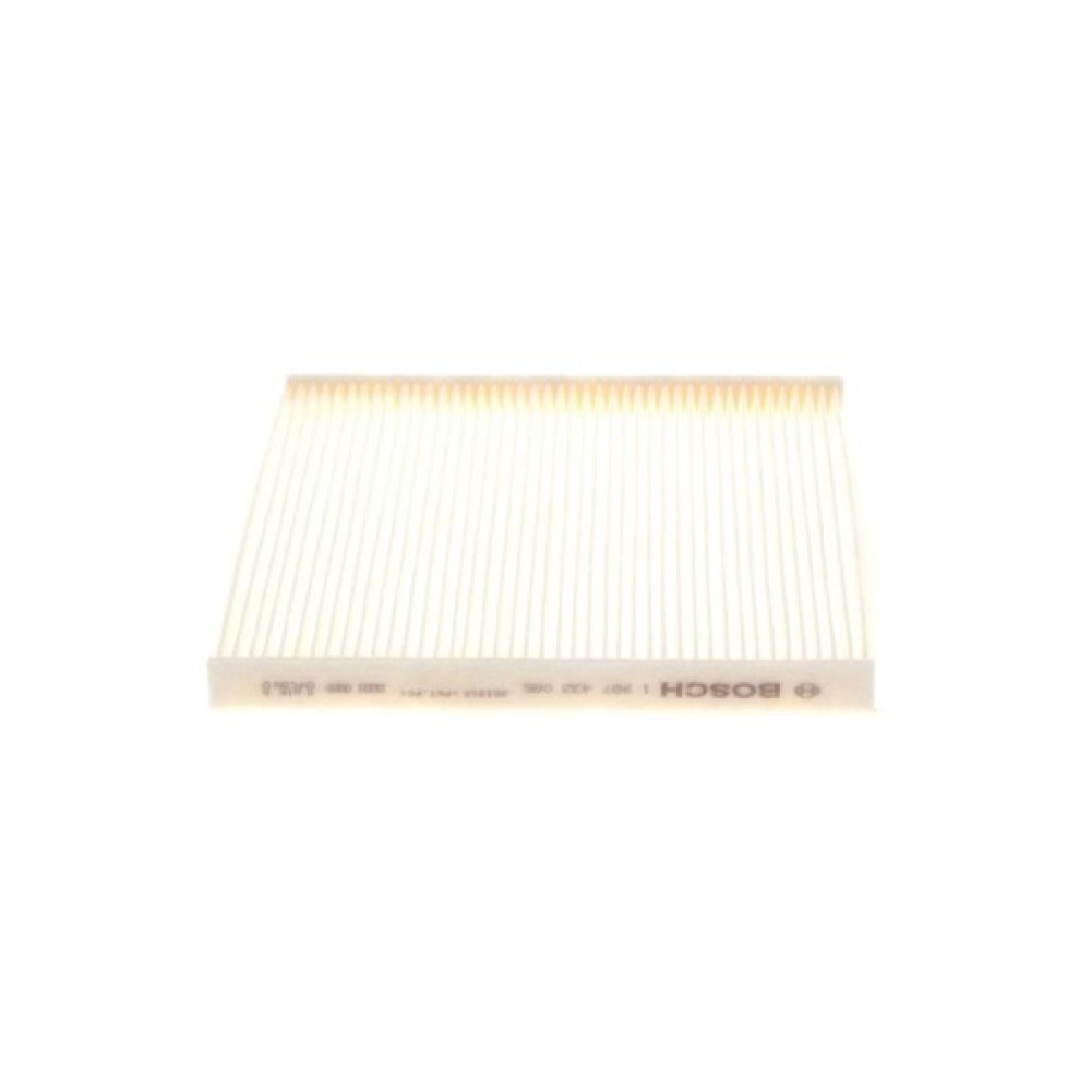 Салонний фільтр Bosch ефективно видаляє пил, пилок, дрібні частинки та інші забруднення, а деякі моделі мають активоване вугілля чи антибактеріальні шари для кращого поглинання неприємних запахів, шкідливих газів і алергенів, що підвищує комфорт і безпеку водія та пасажирів.
