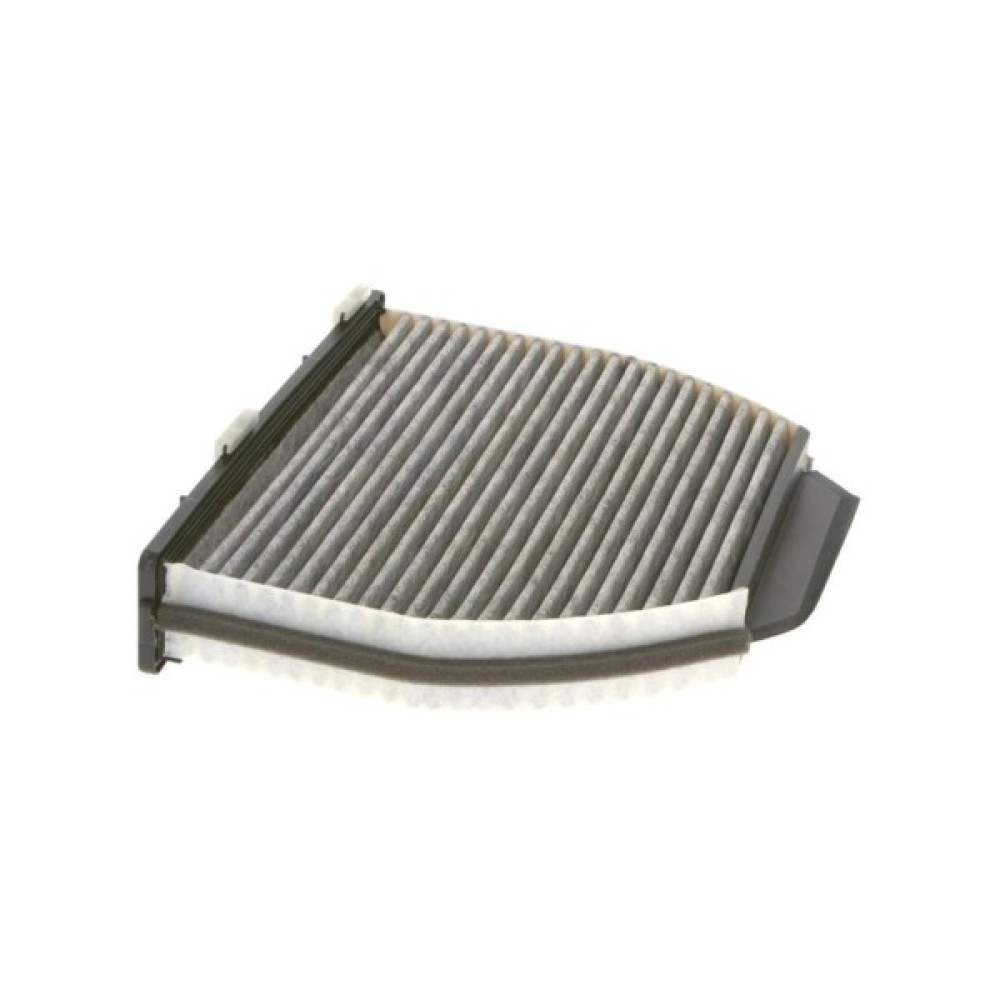 Салонний фільтр Bosch ефективно видаляє пил, пилок, дрібні частинки та інші забруднення, а деякі моделі мають активоване вугілля чи антибактеріальні шари для кращого поглинання неприємних запахів, шкідливих газів і алергенів, що підвищує комфорт і безпеку водія та пасажирів.