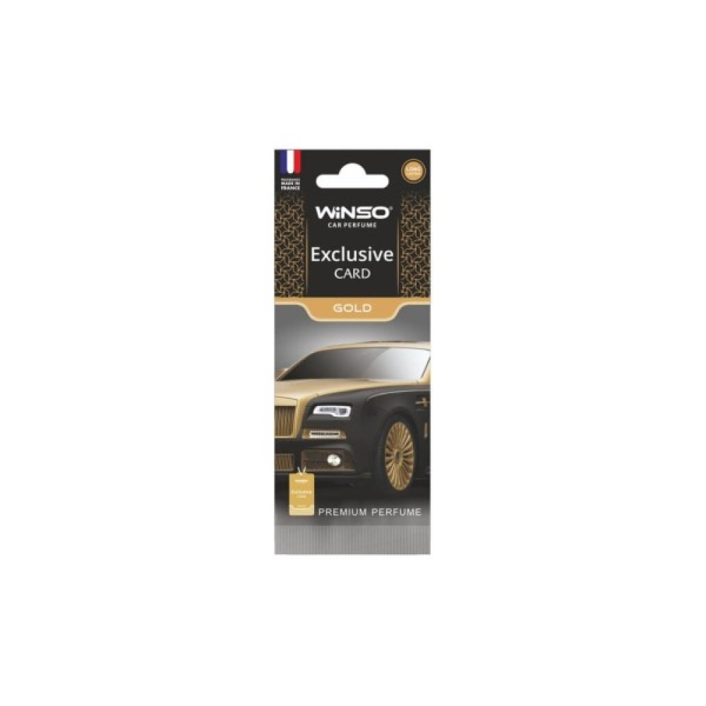 WINSO Card Exclusive Gold (533130) - Стильний автомобільний освіжувач повітря в формі целюлозного листочка невеликих розмірів. Володіє спеціальним шнурком, який дозволяє підвісити ароматизатор на дзеркало заднього виду, кріплення сонцезахисного козирка або гачки в салоні - під впливом потоків повітря освіжувач WINSO Exclusive Gold 533130 рівномірно поширює приємний аромат по всьому салону автомобіля і нейтралізує сторонні запахи, сприяючи високому комфорту і розслабленню водія і пасажирів навіть при тривалих поїздках або в міських пробках. Целюлозна основа листочка відмінно зберігає ароматичне просочення і приємний аромат на тривалий період до 2 місяців.